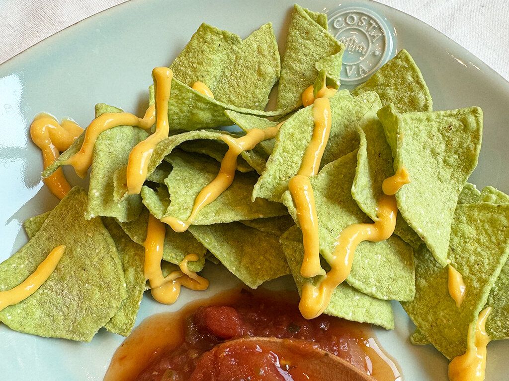 カルディで売っていたアボカドトルティアチップスにチーズソースをかけてみました。