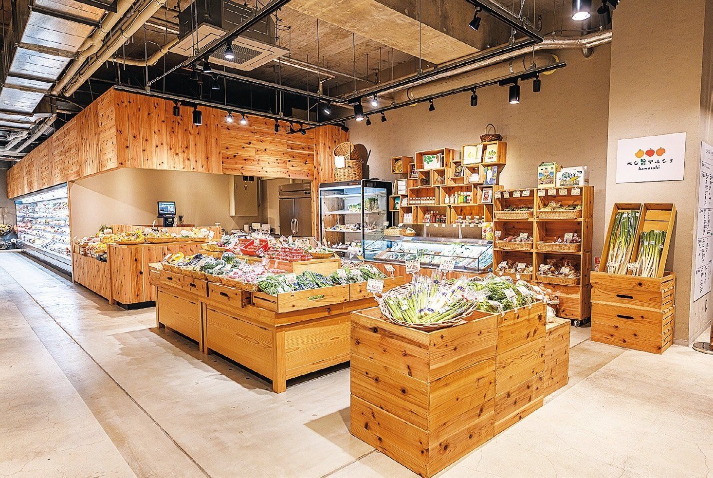 「食を通してつなぐ、つながる」がコンセプト。新鮮な野菜や地元に由来のある食品を眺めていると、マルシェを歩いているような気分になれる!