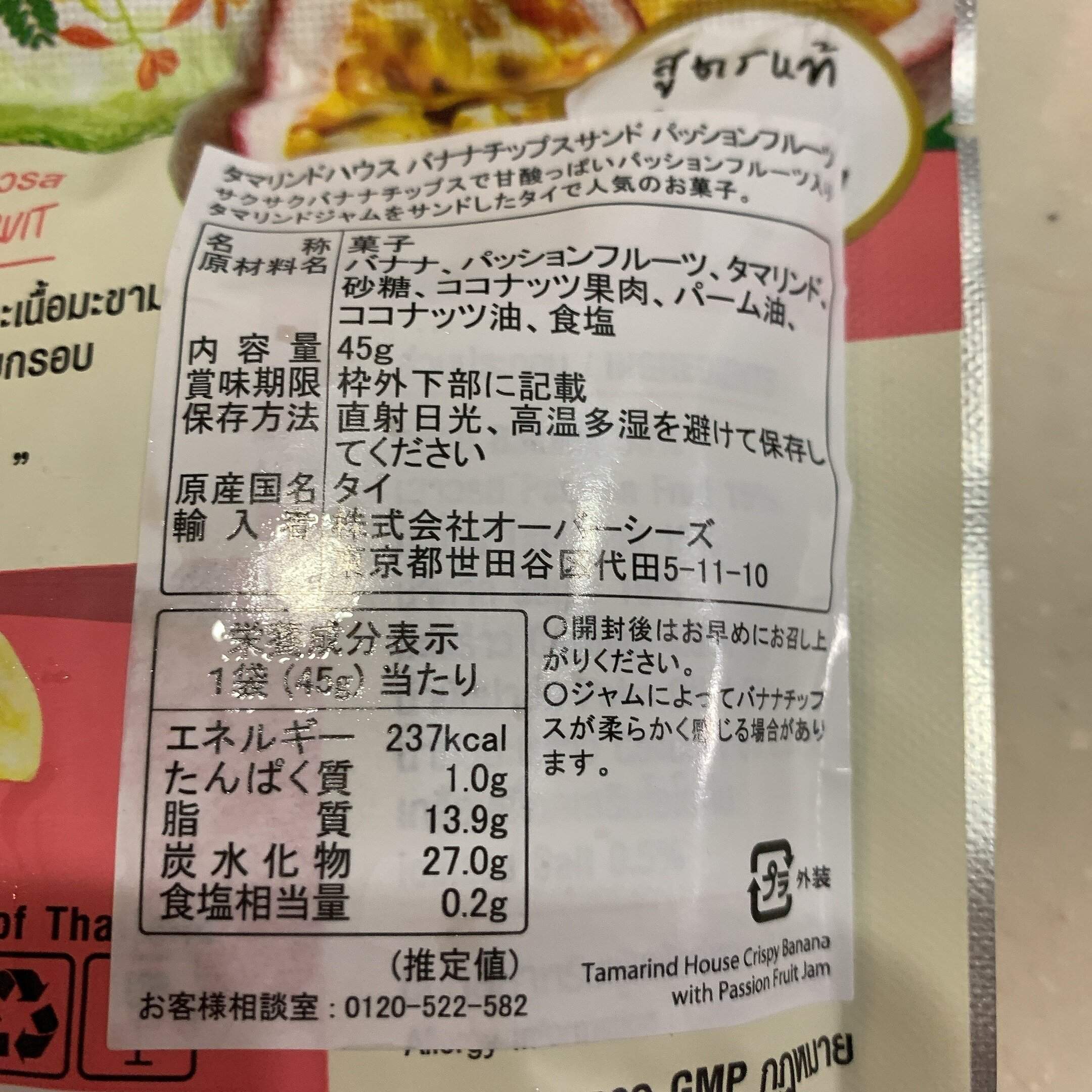 もちろん「タマリンドハウス バナナチップスサンド パッションフルーツ」もバナナのカリッとした食感はありますが、ほかのものとは異なり、中に入っている甘酸っぱいパッションフルーツ入りタマリンドジャムが、また良いアクセントになっていておいしいです。