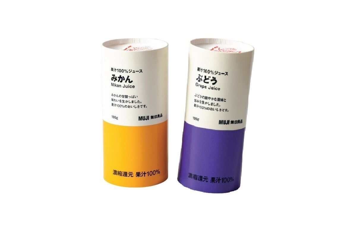 「果汁100%ジュース ぶどう」「同 みかん」各¥120