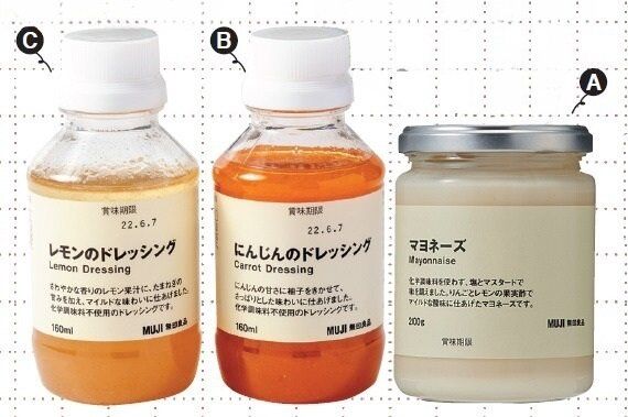 「にんじんのドレッシング」、「レモンのドレッシング」(各160ml)¥290、「マヨネーズ」(200g)¥350