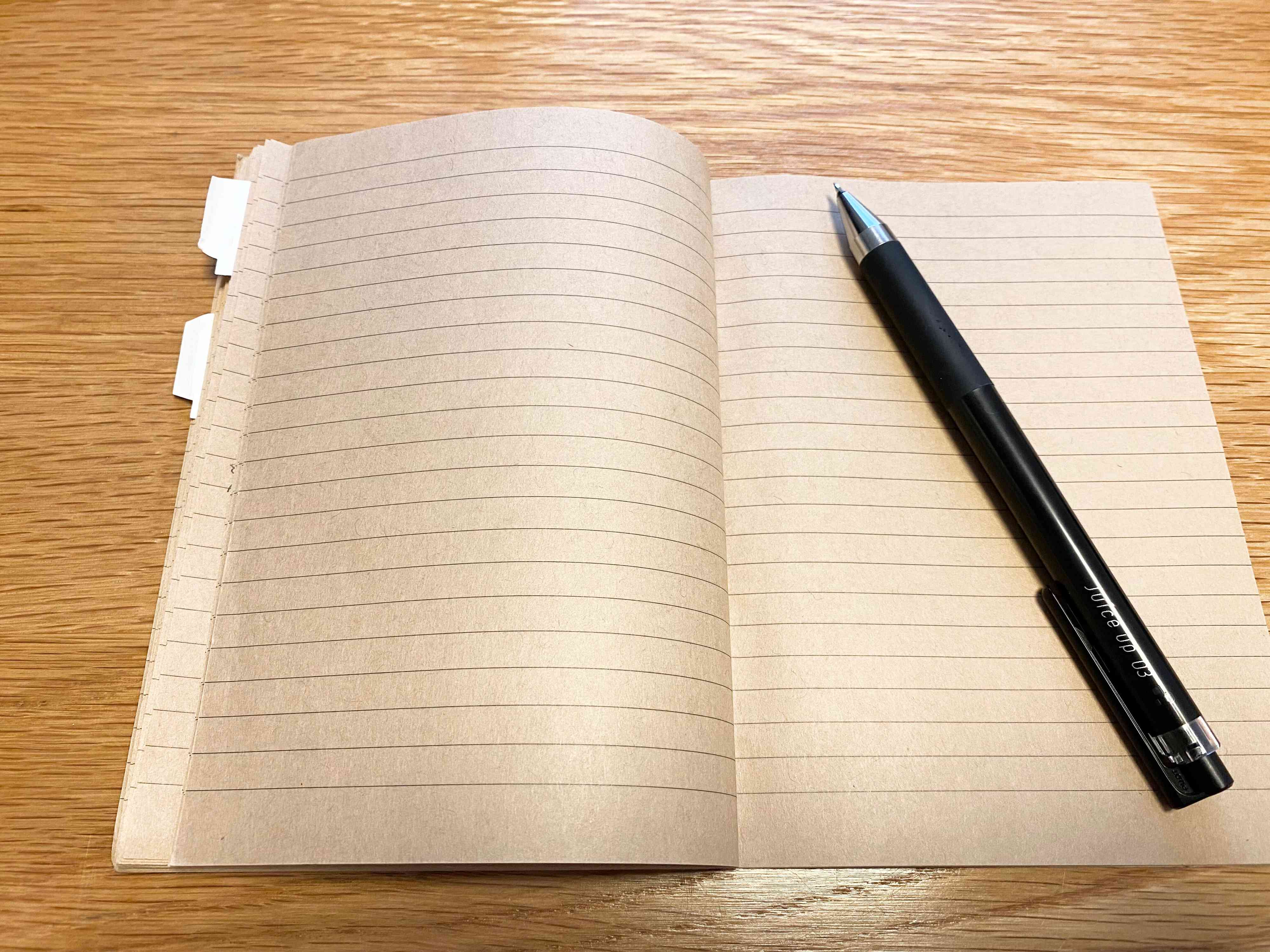 この雑記帳のおかげで、すきま時間にスマホを意味なく眺める時間も減りました。調べ物をする時にもこのメモ帳を利用すると効率があがります。アイデアなどはいつ浮かぶかわからないので、愛用のボールペンJuice up 03と一緒に持ち歩くようにしています。