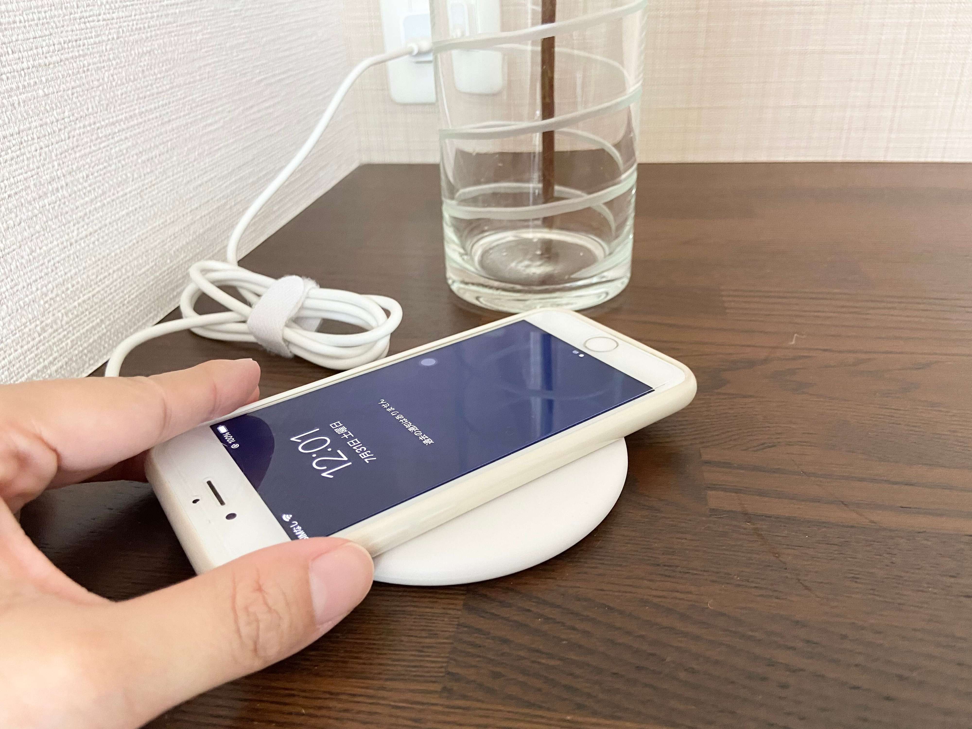 寝る時部屋の電気がもう消えていたりすると、ケーブルに繋ぐのはちょっと手間だったりしますよね。また夜中目が覚めて携帯を手に取る時に、ケーブルを取り外す必要がないのも便利です。