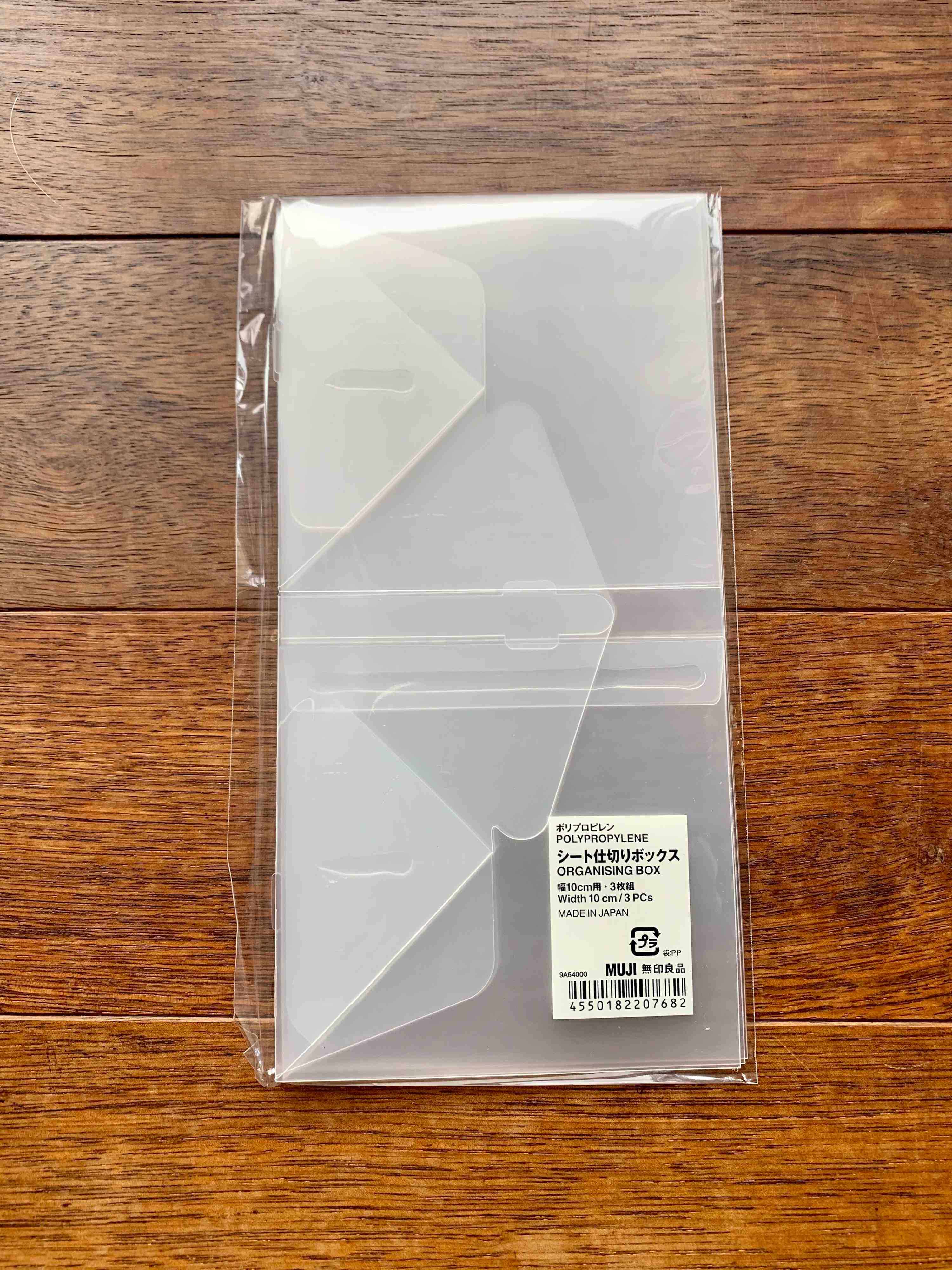 皆さんはこの商品、見た事ありますか?無印良品売り場のファイルボックスコーナーに置いてあります。この仕切りボックスは3個入ってなんと99円!100均より安いのです。