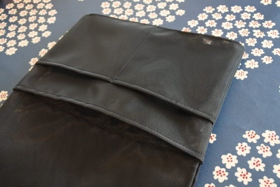 サイズは縦34×横27×マチ3cmで、A4サイズのノートやクリアファイルが入る大きさ。