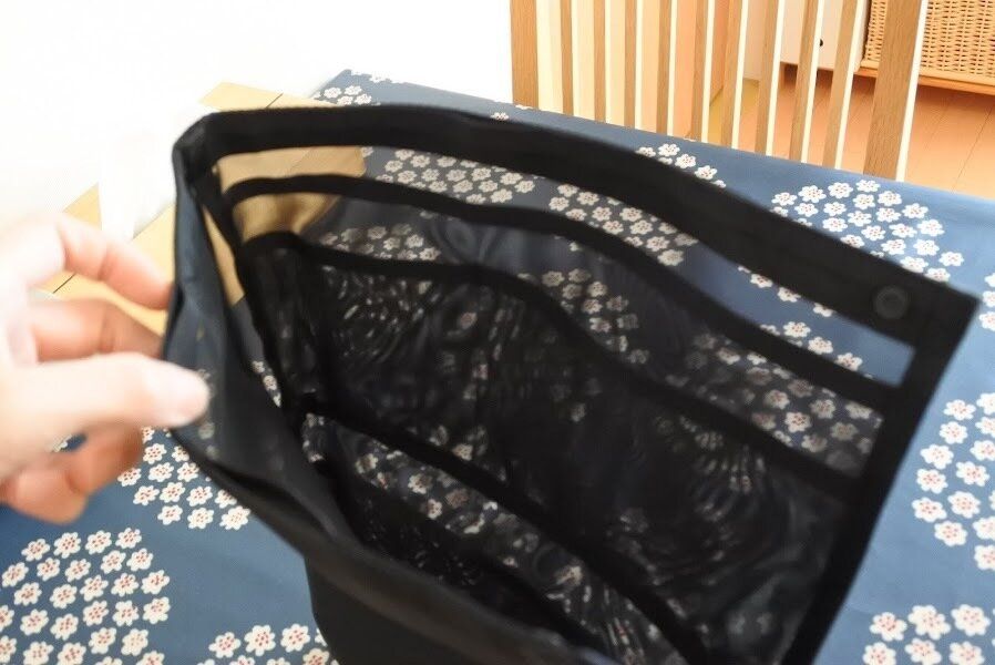 ナイロンメッシュ素材なので軽く、バッグインバッグの外側には3ポケットあります。