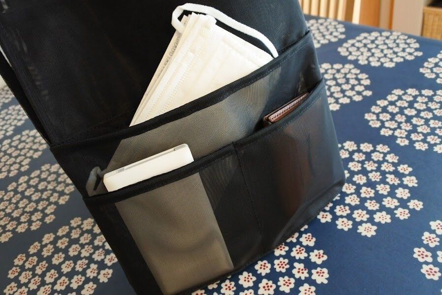 マスクがすっぽり入るポケットもあり、モバイルバッテリーや小物などを分けて収納できるので外出先でリュックの中をガサゴソと探す手間がなくなります!