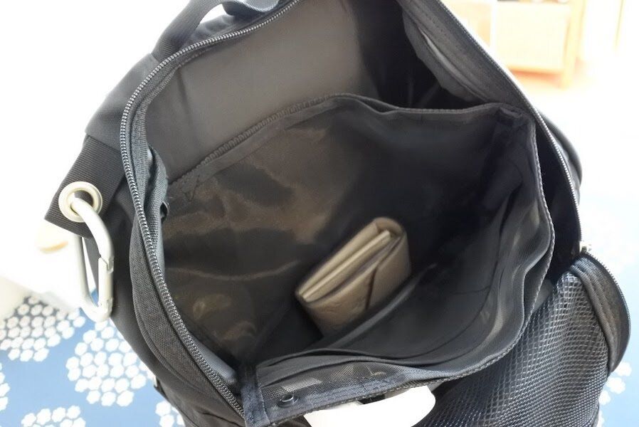 財布などの大事なものはバッグインバッグの内側に収納しておくとものを取り出したときにうっかり落としてしまう心配もなくなり安心です。