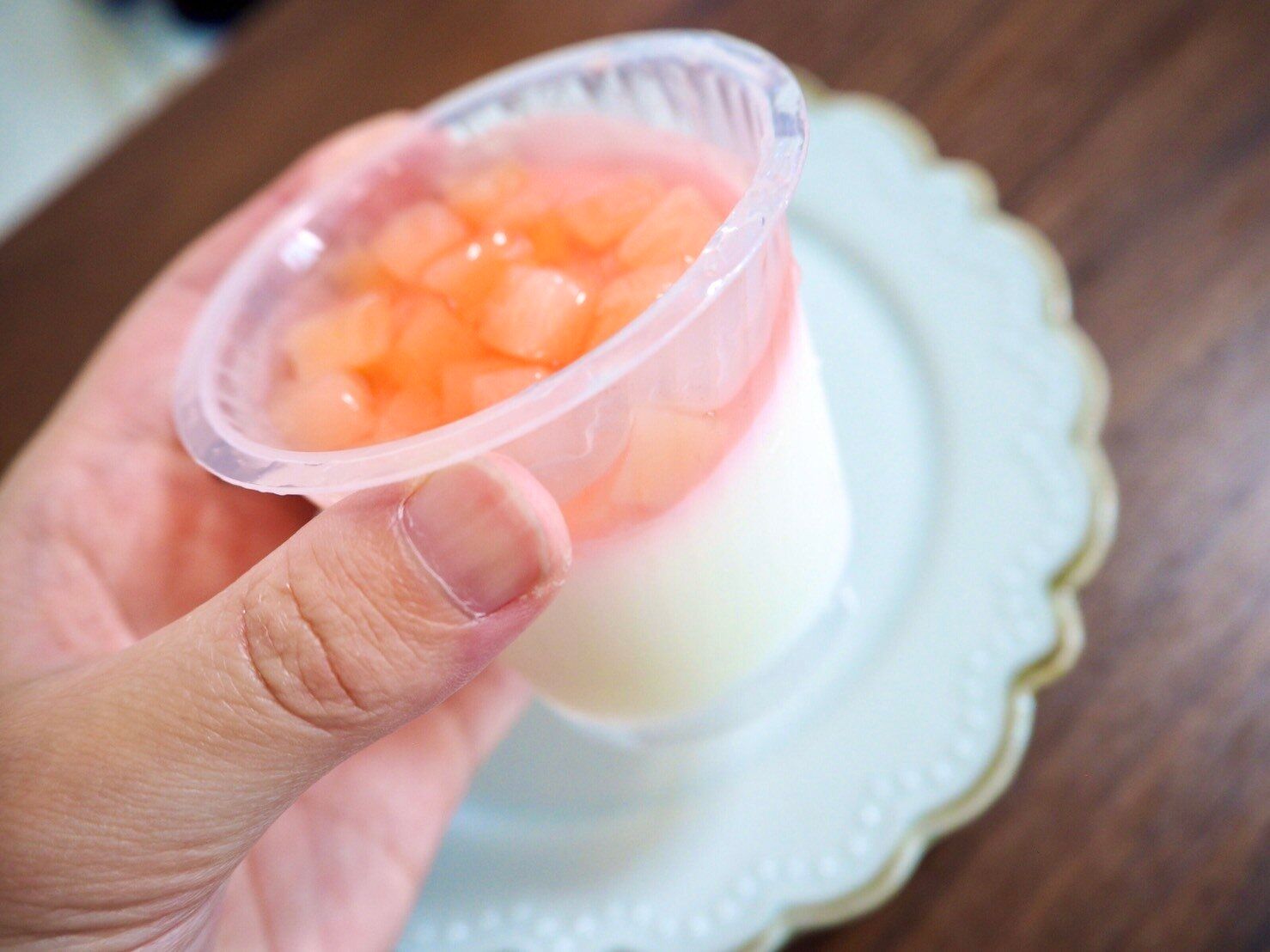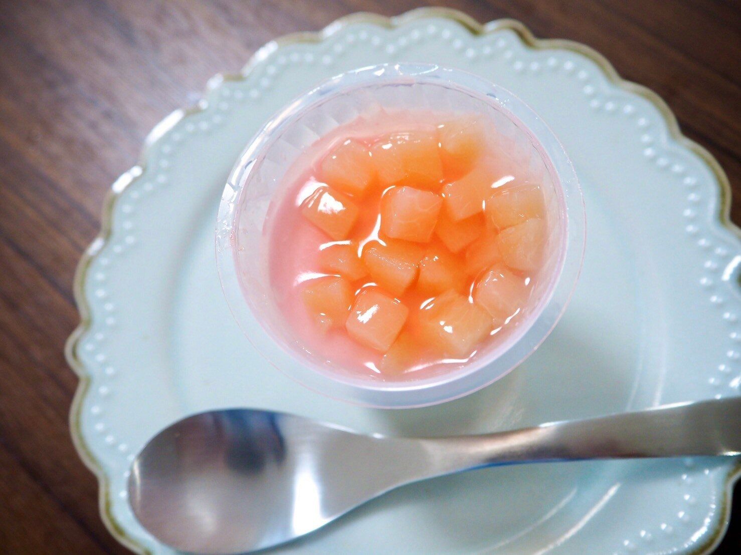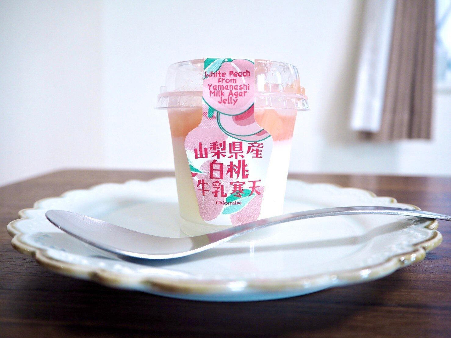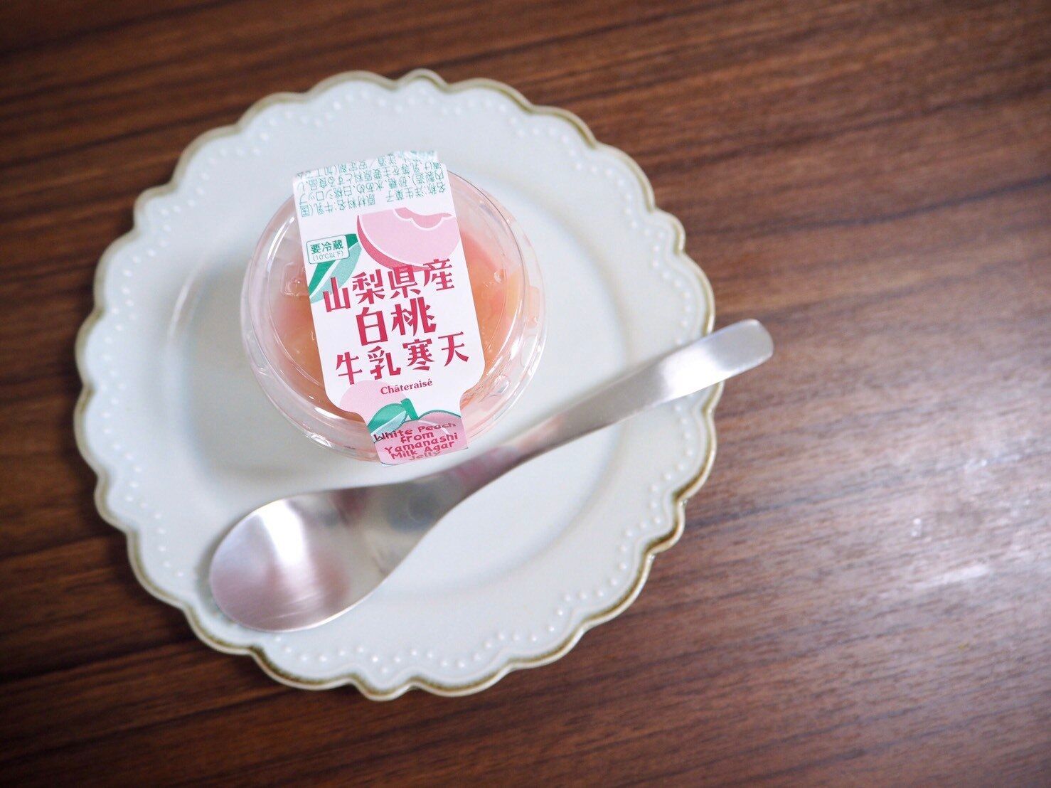 寒天だけでも十分な甘さがあり、そこにさらに甘い桃のコンポートが加わるため個人的には結構甘いと感じました。
