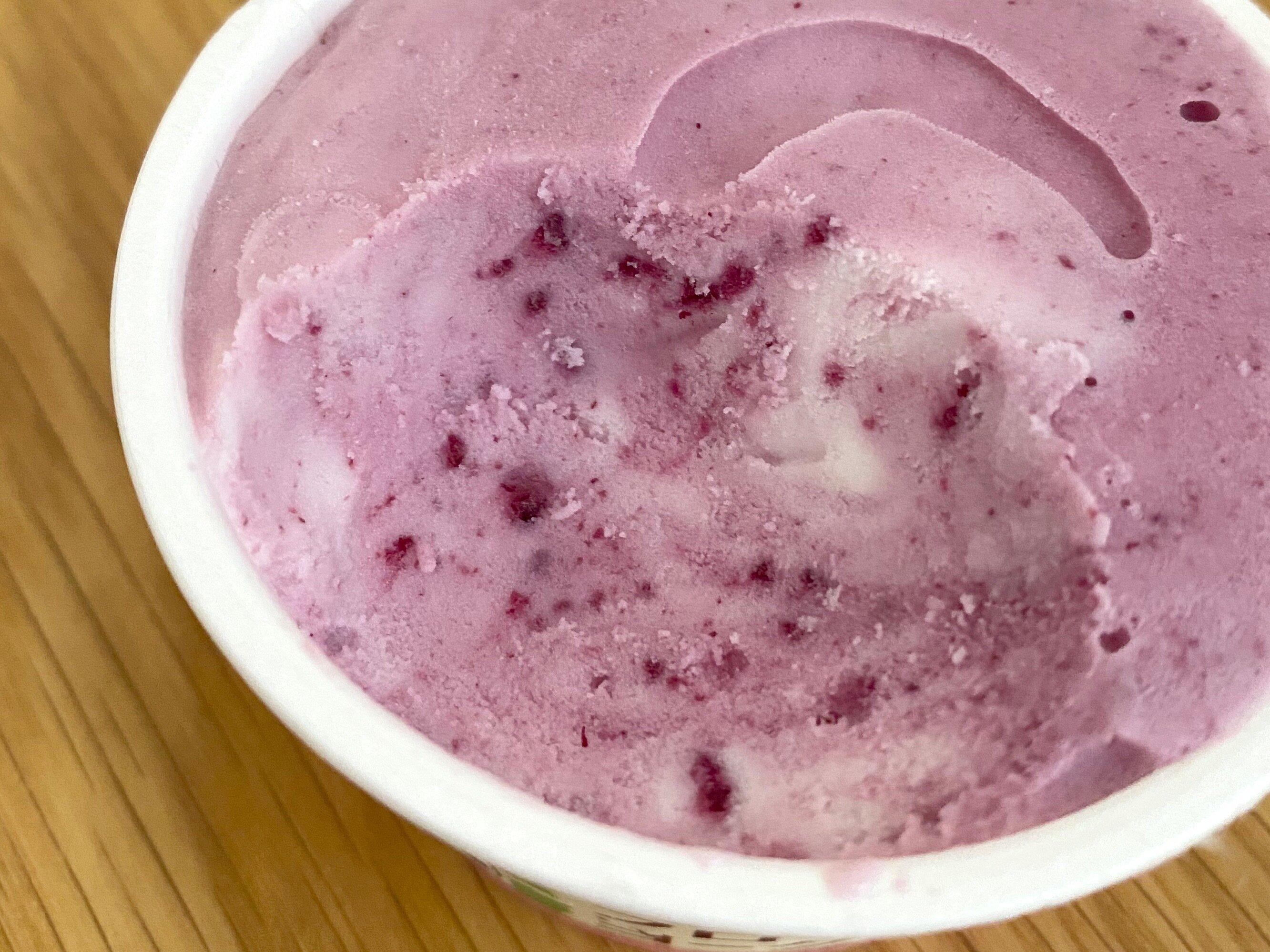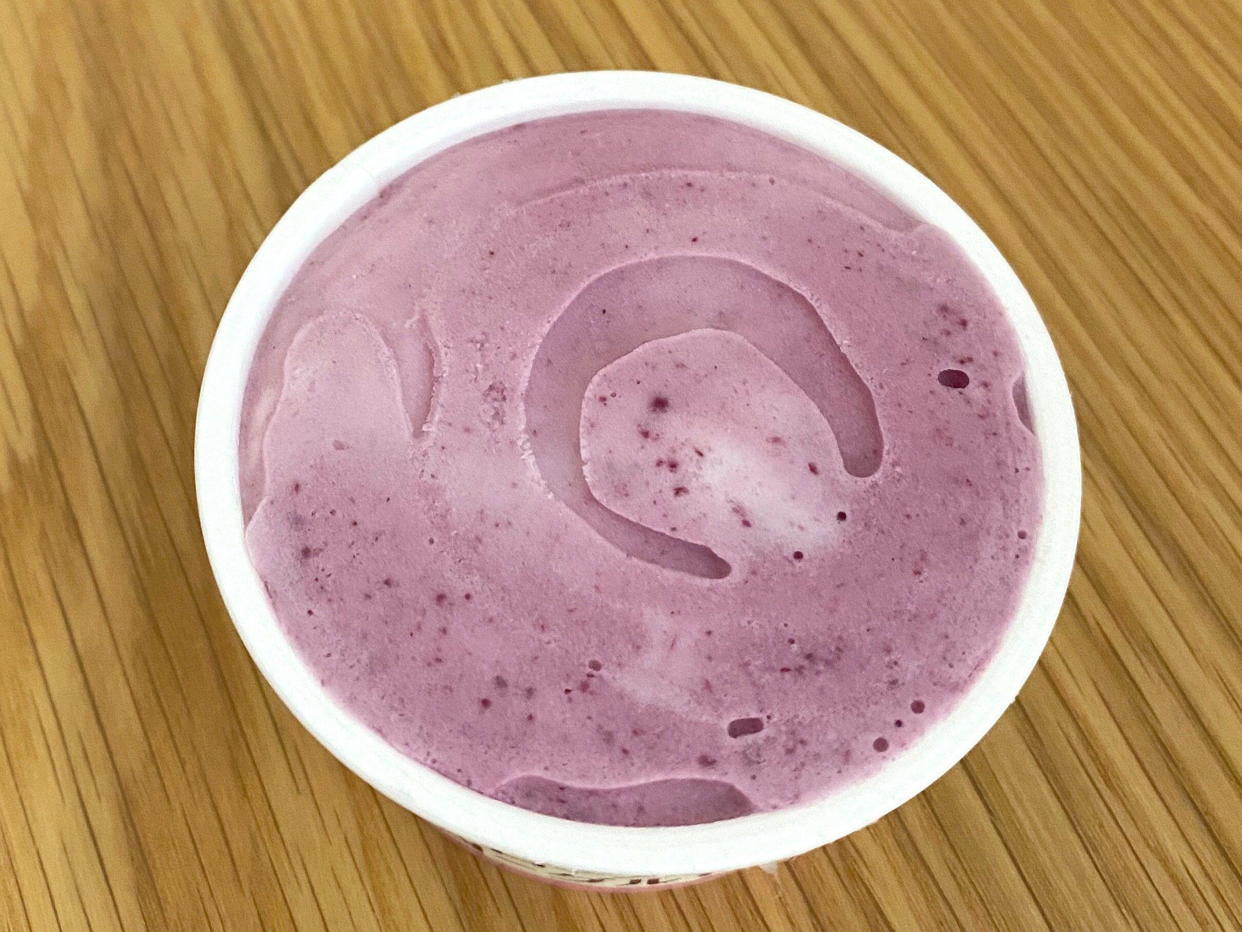 蓋を開けると色鮮やかな薄紫色のフローズンヨーグルトがお目見え!