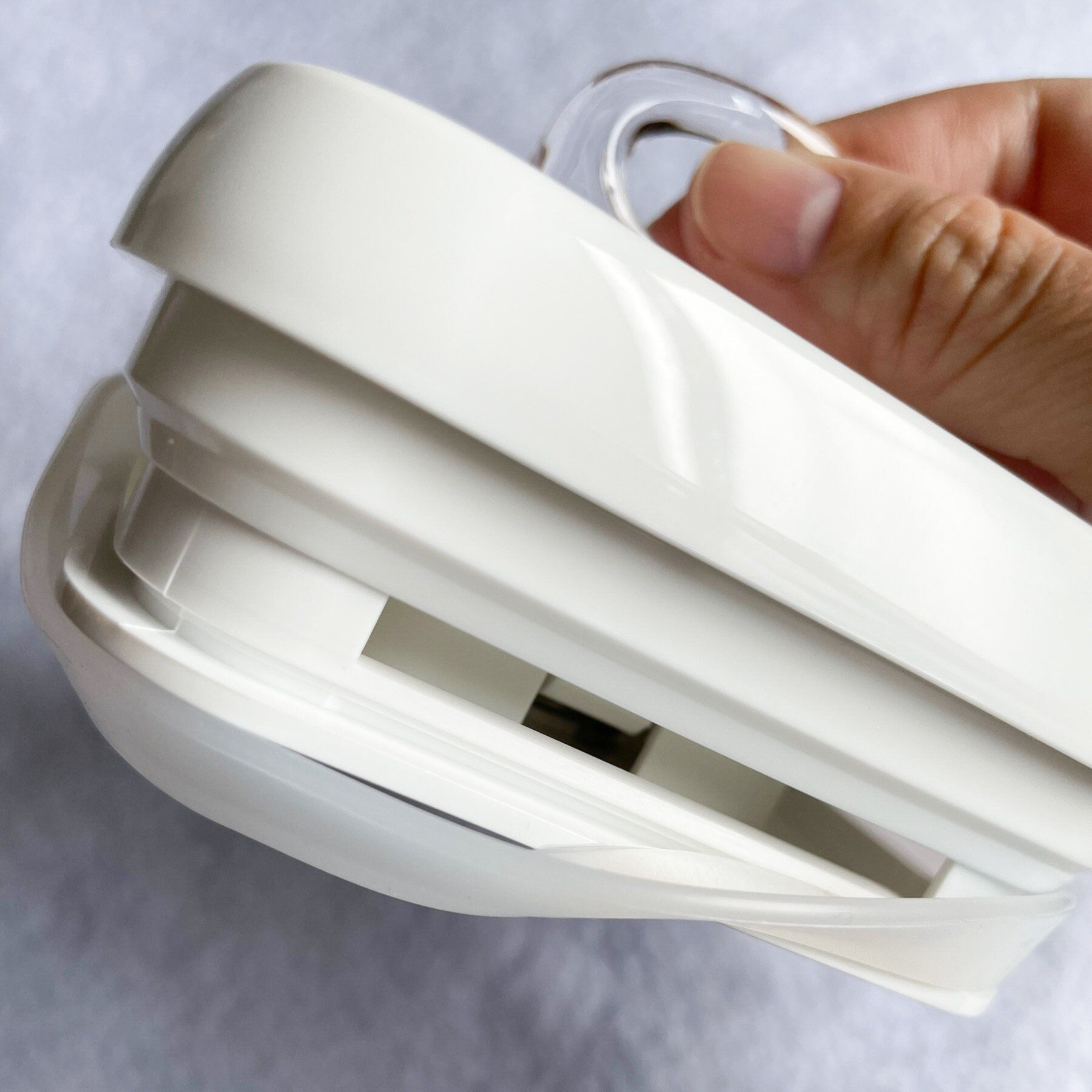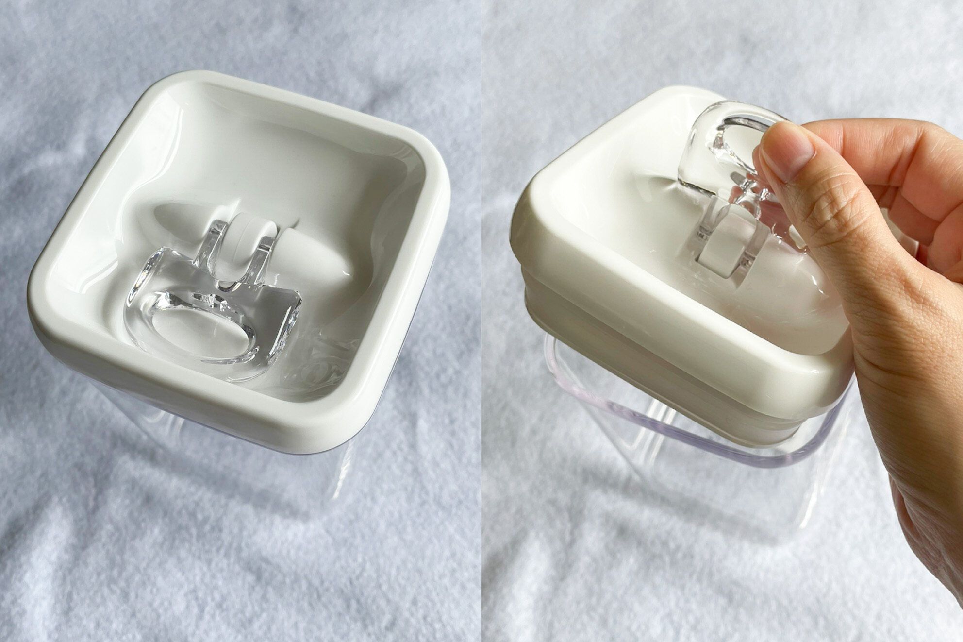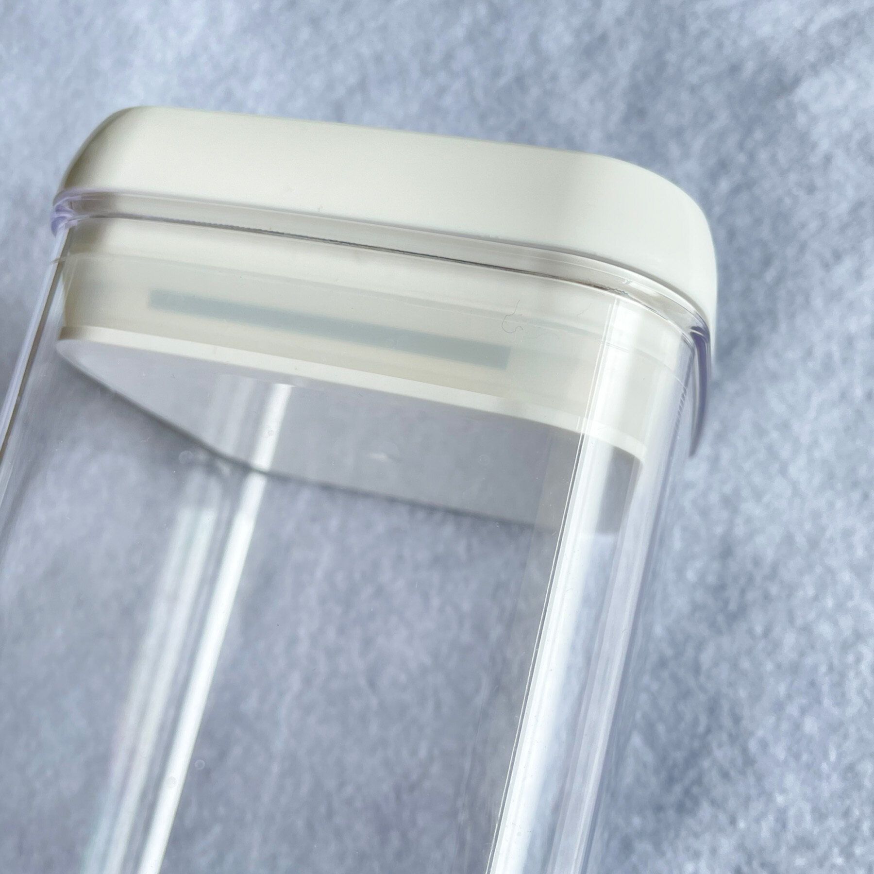 蓋のパッキン部分が食い込んでいるので、本来の高さより余裕をもった量や高さになるよう物を入れるのが良さそうです。