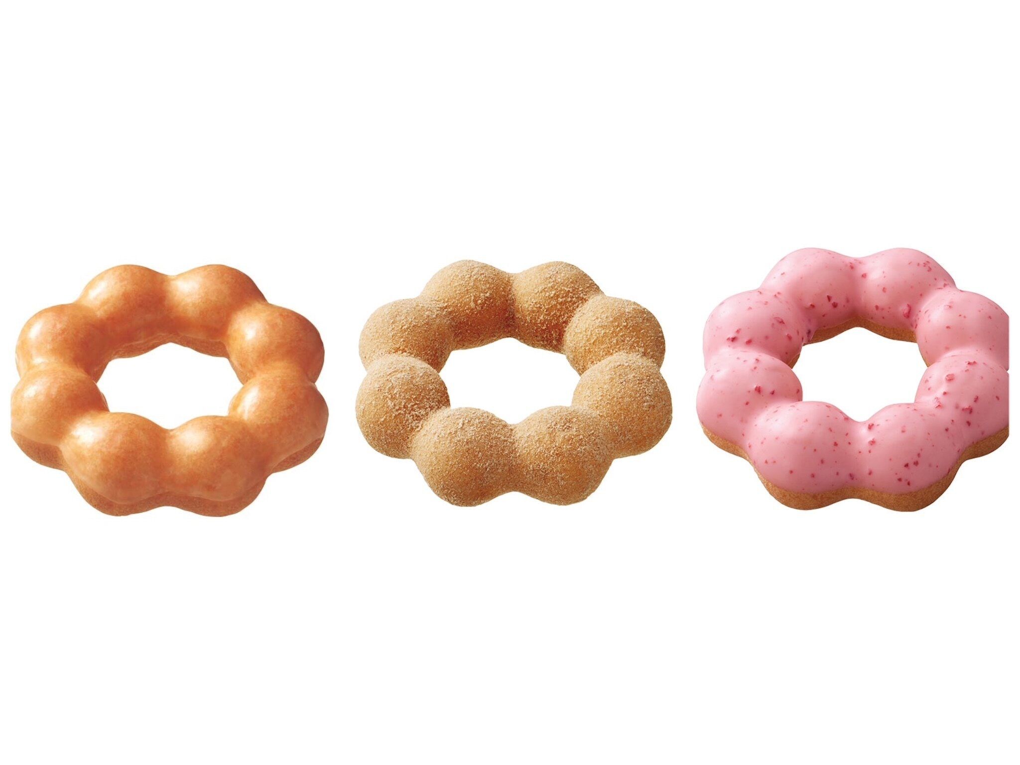 もちもちの食感の虜になる人続出!大人気のポン・デ・リングは「ポン・デ・リング」「ポン・デ・黒糖」「ポン・デ・ストロベリー」の全3種類。