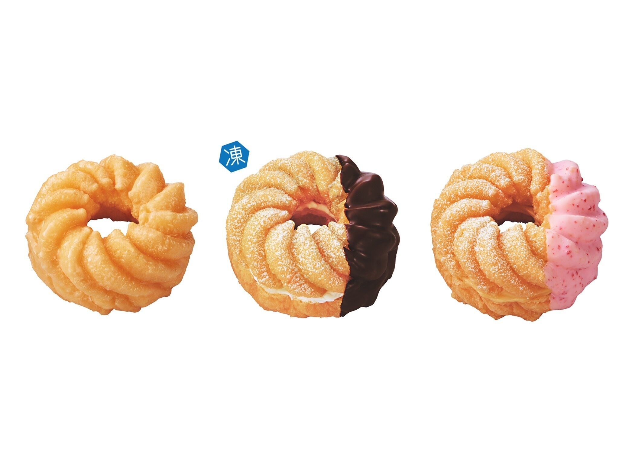 生フレンチクルーラーはフレンチクルーラー50周年を記念して発売された期間限定ドーナツ。通常のフレンチクルーラーよりも柔らかくしっとりとした口どけの良さを感じる「生」食感の生地が特徴的な「生フレンチクルーラー」、柔らかくしっとりとした生フレンチクルーラー生地に2種のクリームをサンドし、仕上げにチョコをコーティングした「エンゼル&カスタード生フレンチ」、生フレンチクルーラー生地にホイップクリームと2種のベリーが入ったミックスベリージャムをサンドした「エンゼル&ベリー生フレンチ」の全3種類。
