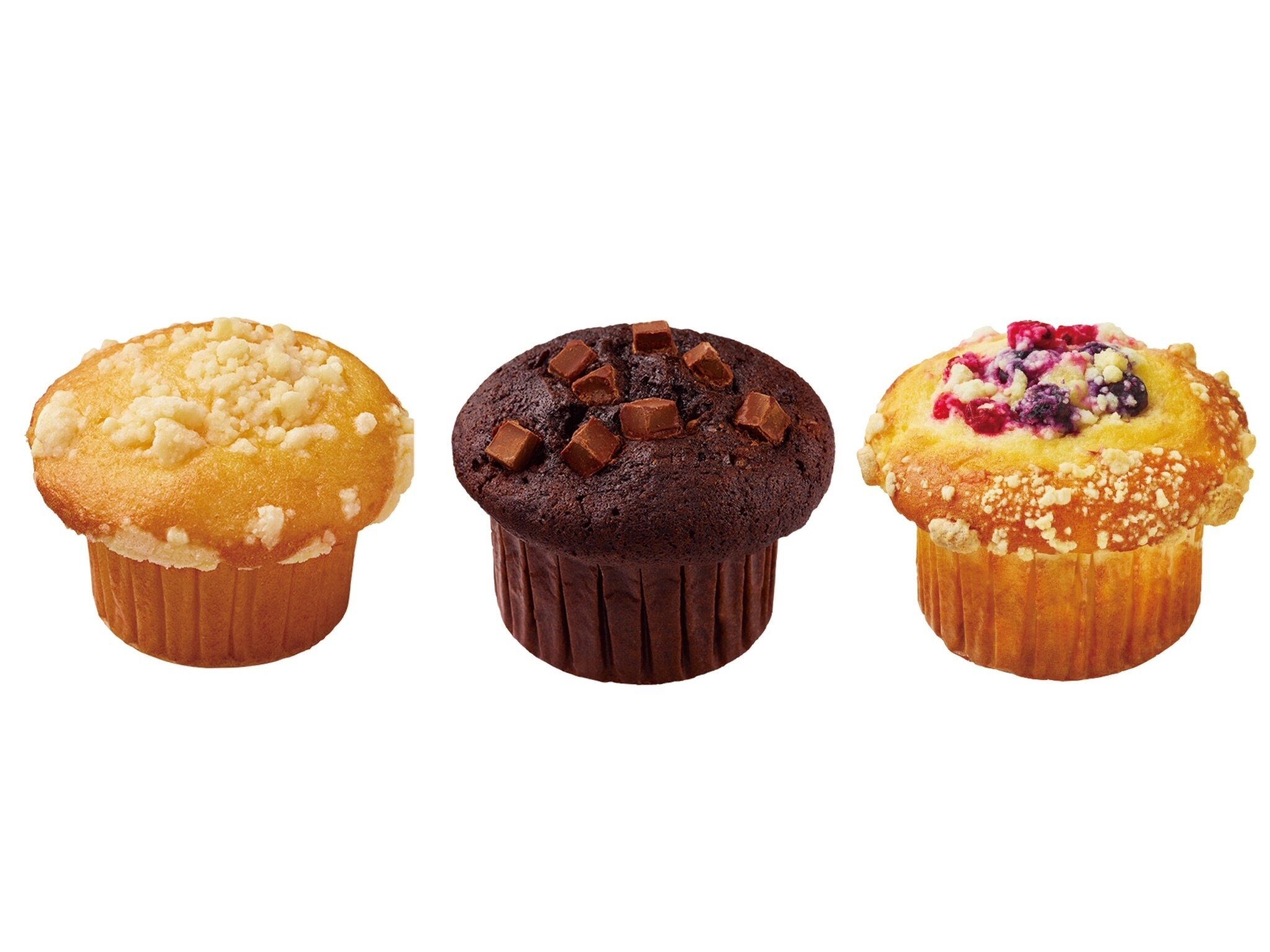朝ごはんにもピッタリのしっとりした食感が魅力的なマフィンは「しっとりマフィン バター風味」、「しっとりマフィン チョコ」、「しっとりマフィン ベリーヨーグルト」の全3種類。