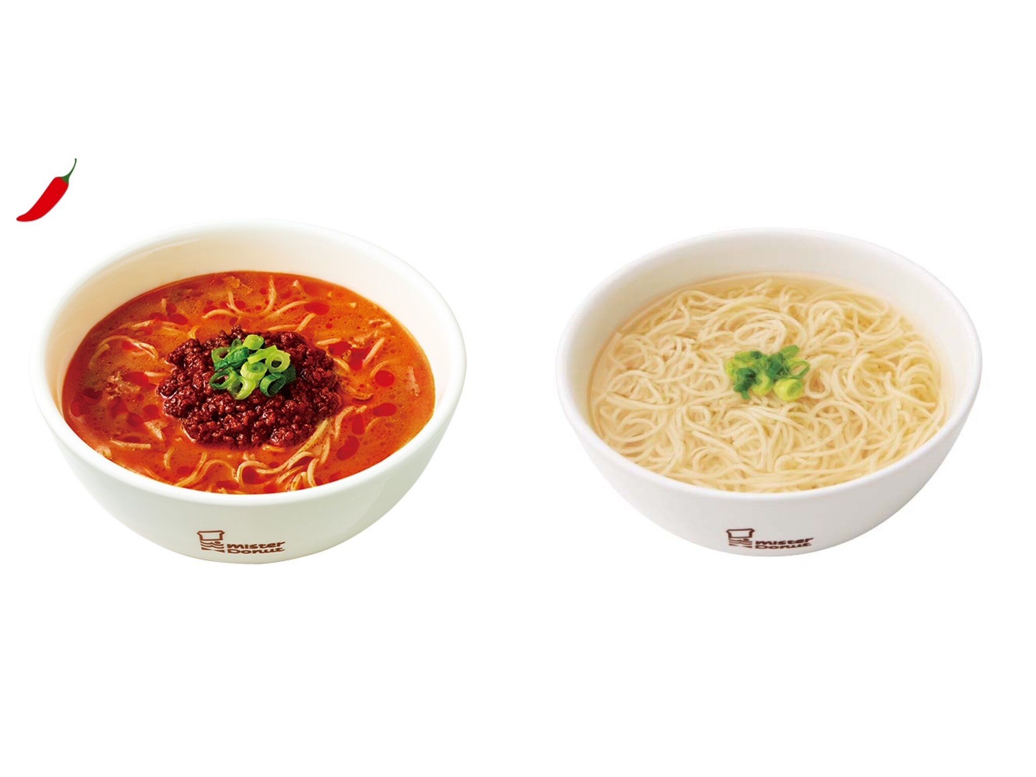 ミスタードーナツはイートイン限定の飲茶メニューがあります。特に人気の麺類は「四川担々麺」と「汁そば」の2種類が販売されています。