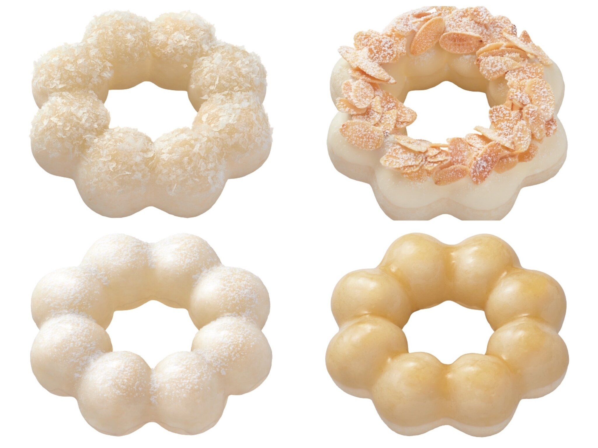 ミスタードーナツの人気商品「ポン・デ・リング」発売20周年を記念して「白いポン・デ・リング」が発売。白いポン・デ・リング生地にグレースをつけてドーナツシュガーをまぶした「白いポン・デ・リング」、白いポン・デ・リング生地に白あんをのせキラキラトッピングで仕上げたかわいい和菓子のような味わいの「白いポン・デ・白あん」、白いポン・デ・リング生地にしょうゆ風味が香るみたらしのたれを組み合わせた、風味も見た目も、まるでみたらし団子のような「白いポン・デ・みたらし」、白いポン・デ・リング生地のやわ、もっちり食感と香ばしいスライスアーモンドのダブル食感で、カスタードクリームとホワイトチョコがおいしさを引き立てる「白いポン・デ・カスターアーモンド」の全4種類。