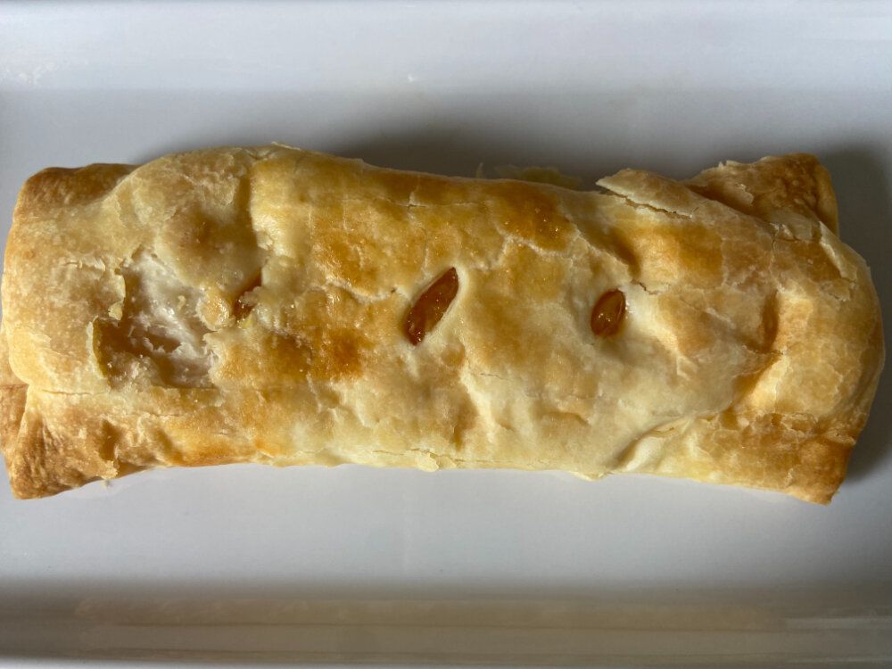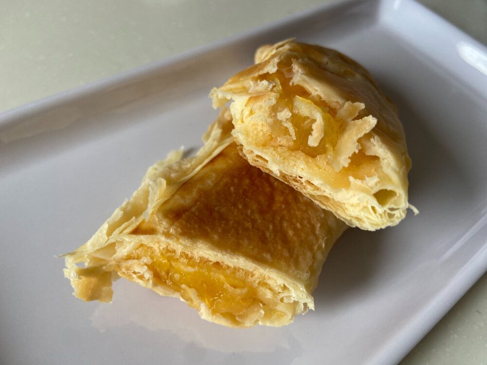 パイはしっとり系の食感、中にはパイナップルフィリングがたっぷり入って甘酸っぱい味わいがたまりません。果肉がごろっと入っていてとってもおいしいです。