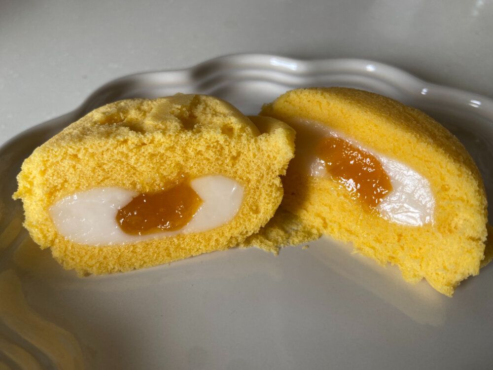 断面も美しい!中にはココナッツ風味の白いカスタードクリームにマンゴーのジャム。