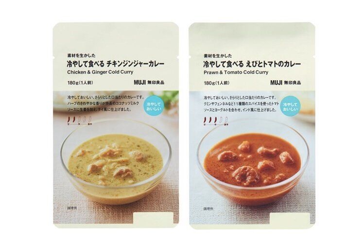 「素材を生かした 冷やして食べる えびとトマトのカレー」「同 チキンジンジャーカレー」各¥350