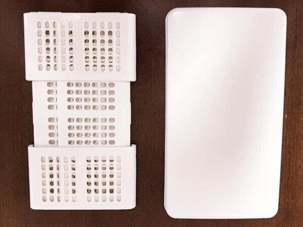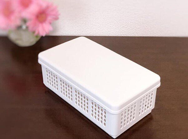 もうひとつの「やわらかポリエチレンケース・ハーフ・大」は約幅18×奥行25.5×高さ24cmで、価格は790円。このほかにも、小さいのから大きいものや丸型など、複数のサイズ、形が展開されています。