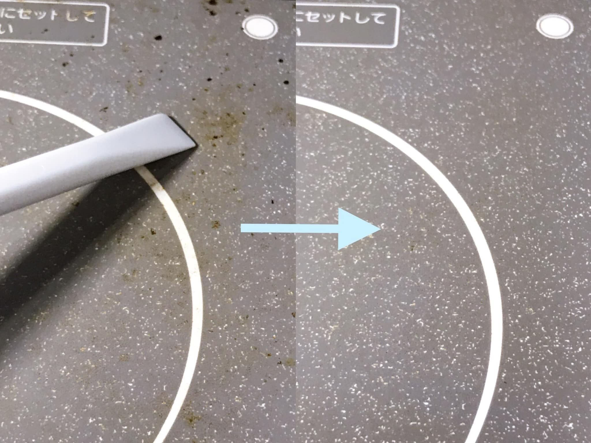 「ヘラ」は、プラスチックの中でも高い耐衝撃性をもつポリカーボネートでできているので、IH調理台や五徳にこびりついた焦げつきをこそぎ取るのに使えます。