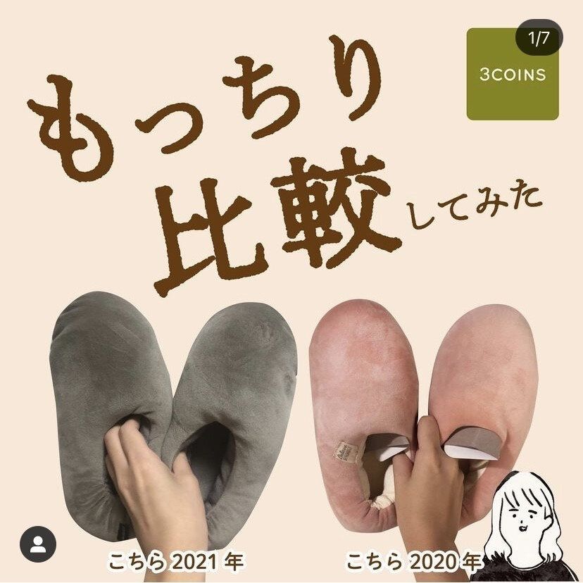 昨年大好評だった「もちもちルームシューズ」が、今年は新色を加えて再販売されました!名前のとおり、もっちもちの肌ざわりに病みつきになるルームシューズです。その秘密は、内側にもちもちの綿がしっかり詰まっているため。足を入れると足首まで隙間なくすっぽり包んでくれて、足全体が温まるそう。税込330円とコスパもいいので、1足持っていれば重宝すること間違いなし。再入荷してもすぐに売れきれてしまう人気アイテムなので、見つけたら即買いして!