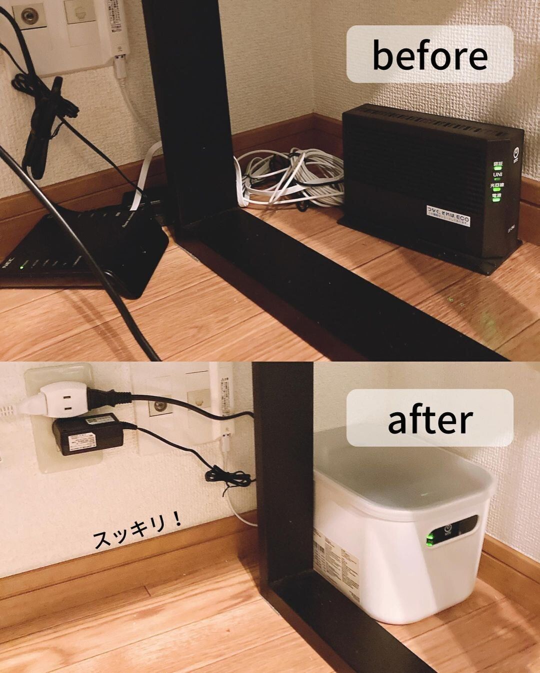 「やわらかポリエチレンケース・ハーフ」は、大・中・小の3サイズ展開。こちらも深さでサイズが異なり、すべて同じふたを使用できます。ルーターを中に入れて、持ち手からコード類を引き出して電源につなぎ、上からふたをかぶせるというアイデアは、床掃除が簡単になるのでぜひ真似したいですね。ハーフのほうは、「大」が590円、「中」が490円、「小」が390円です。
