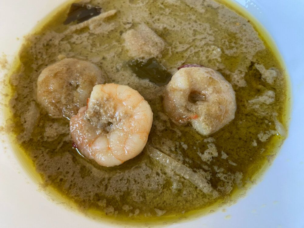 これも相性抜群です。カレーにえびの旨みが移ってえびにもカレーのスパイスや風味が染みて、やみつきになるおいしさ!えびを追加したことで、お店で食べるような特別感のある味わいに仕上がりました。