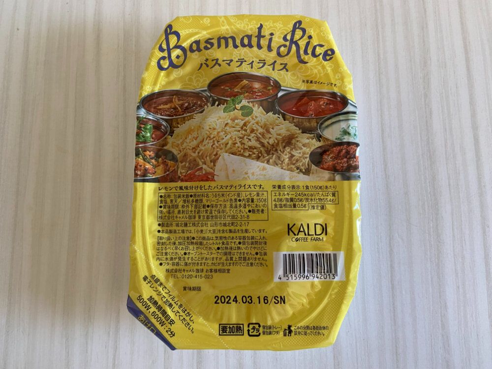 今回紹介するのは、「バスマティライス」(購入時:250円)です。