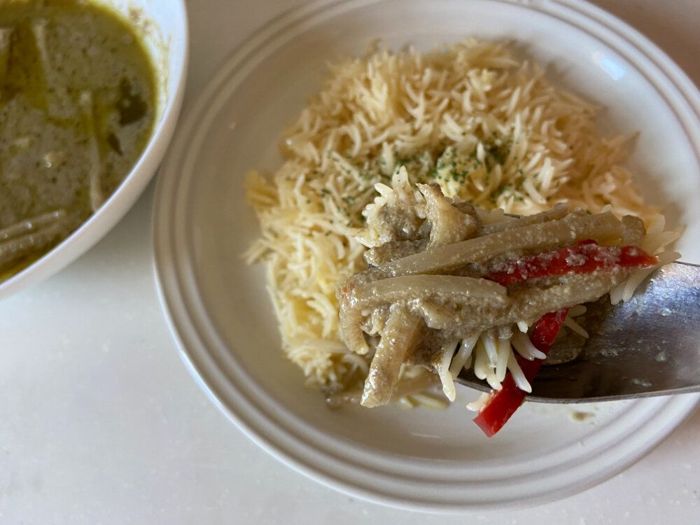 タイのグリーンカレーに合わせて。ココナッツミルクベースのまろやかな味わいとスパイスの効いた辛さが細長いパラパラのお米にぴったり!