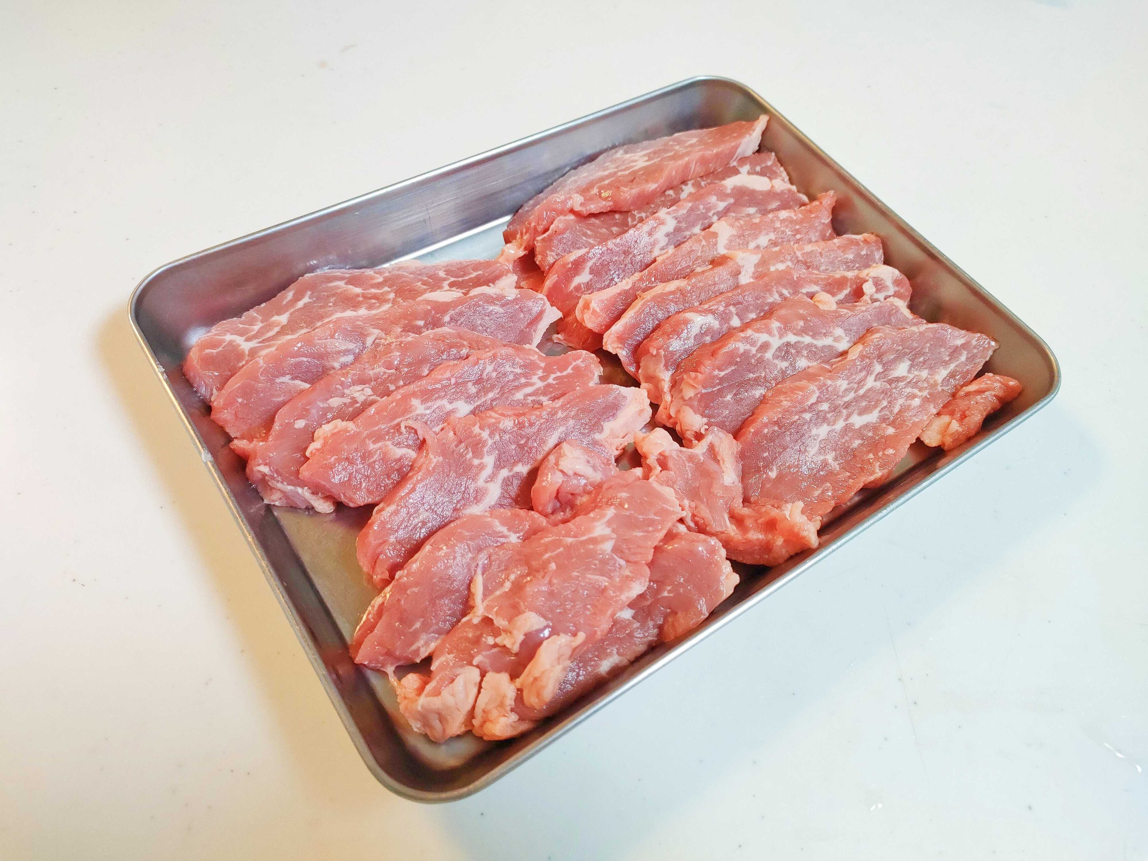 カットしてみるとわかるとおりに、赤身の多い部分です。サシはあまりみられませんが、ほどよく入っているので、焼いたら硬くて食べにくい!ということはありません。