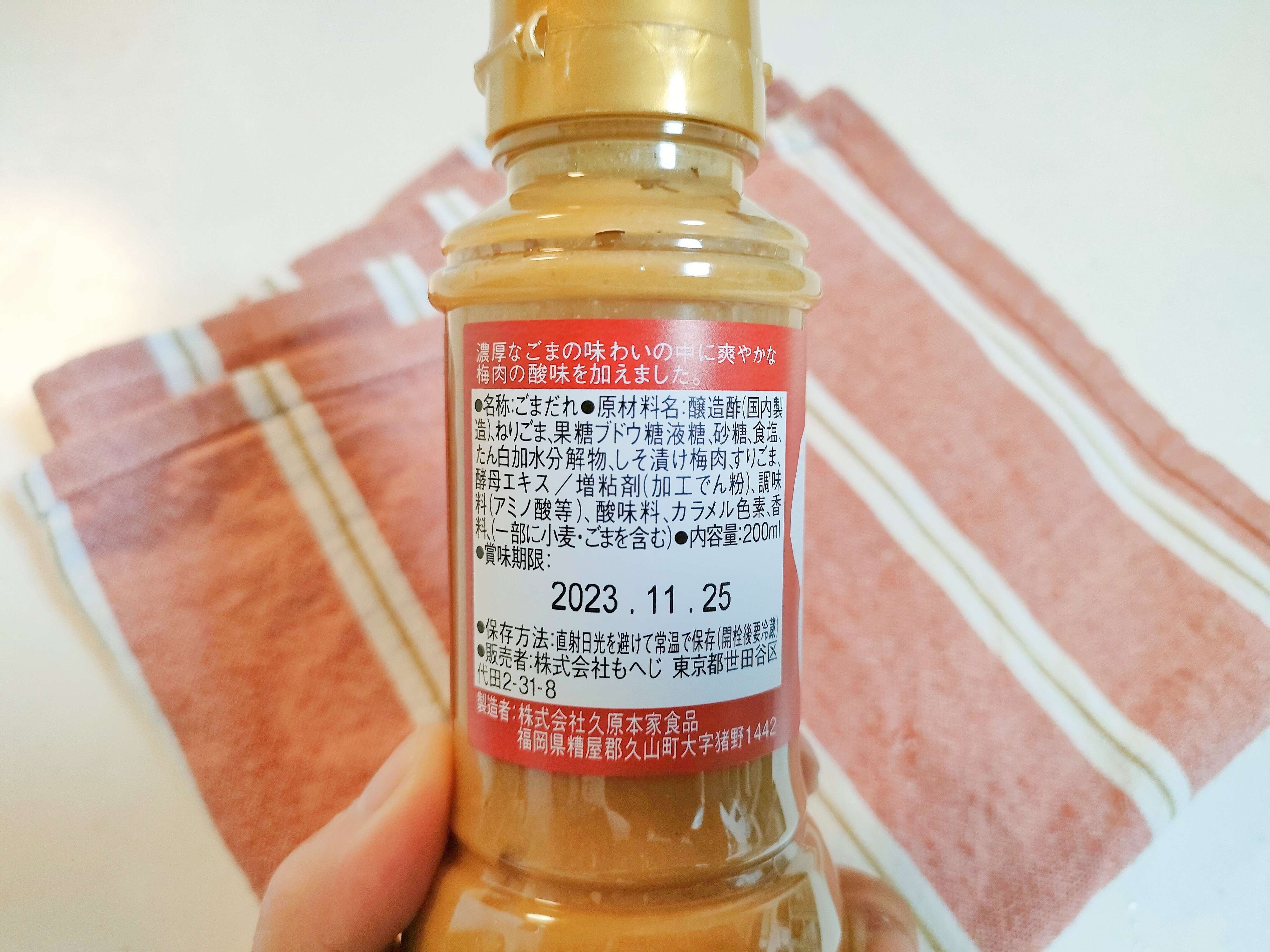 裏面表示をみてみると、醸造酢、ねりごま、砂糖、食塩、すりごまなどに加えて、しそ漬け梅肉が入っています。