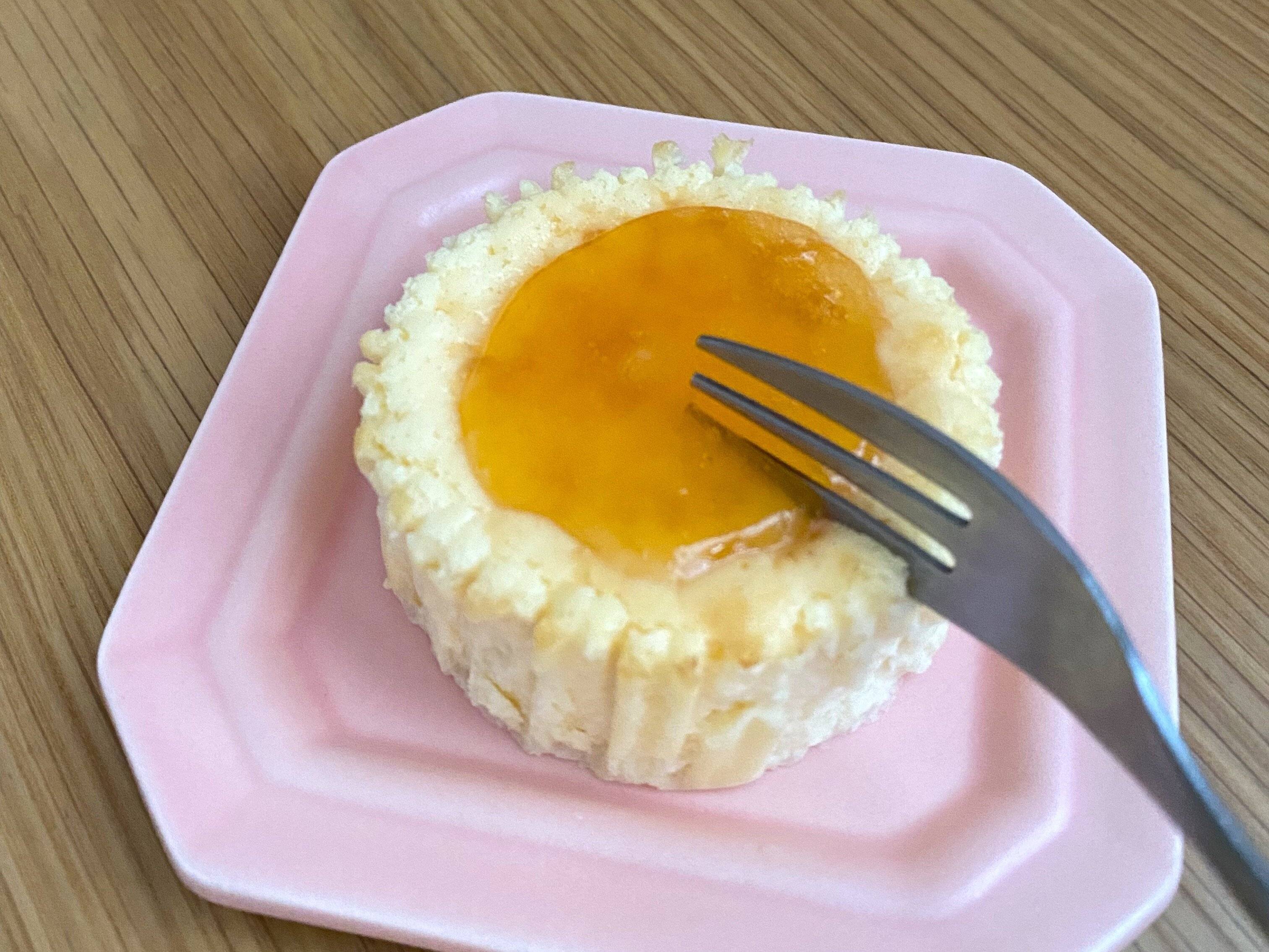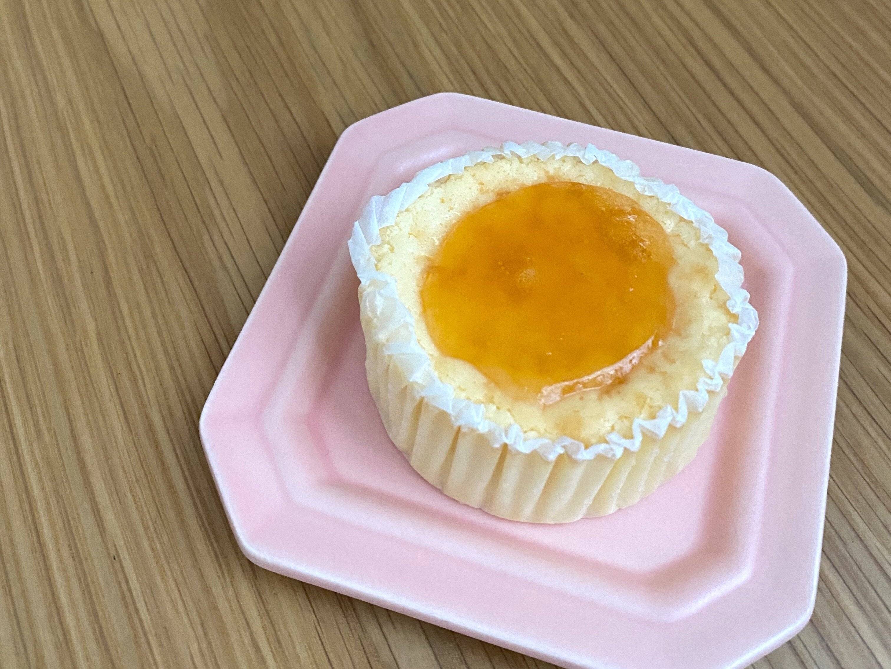 アプリコットソースがトッピングされた濃厚なチーズケーキです。