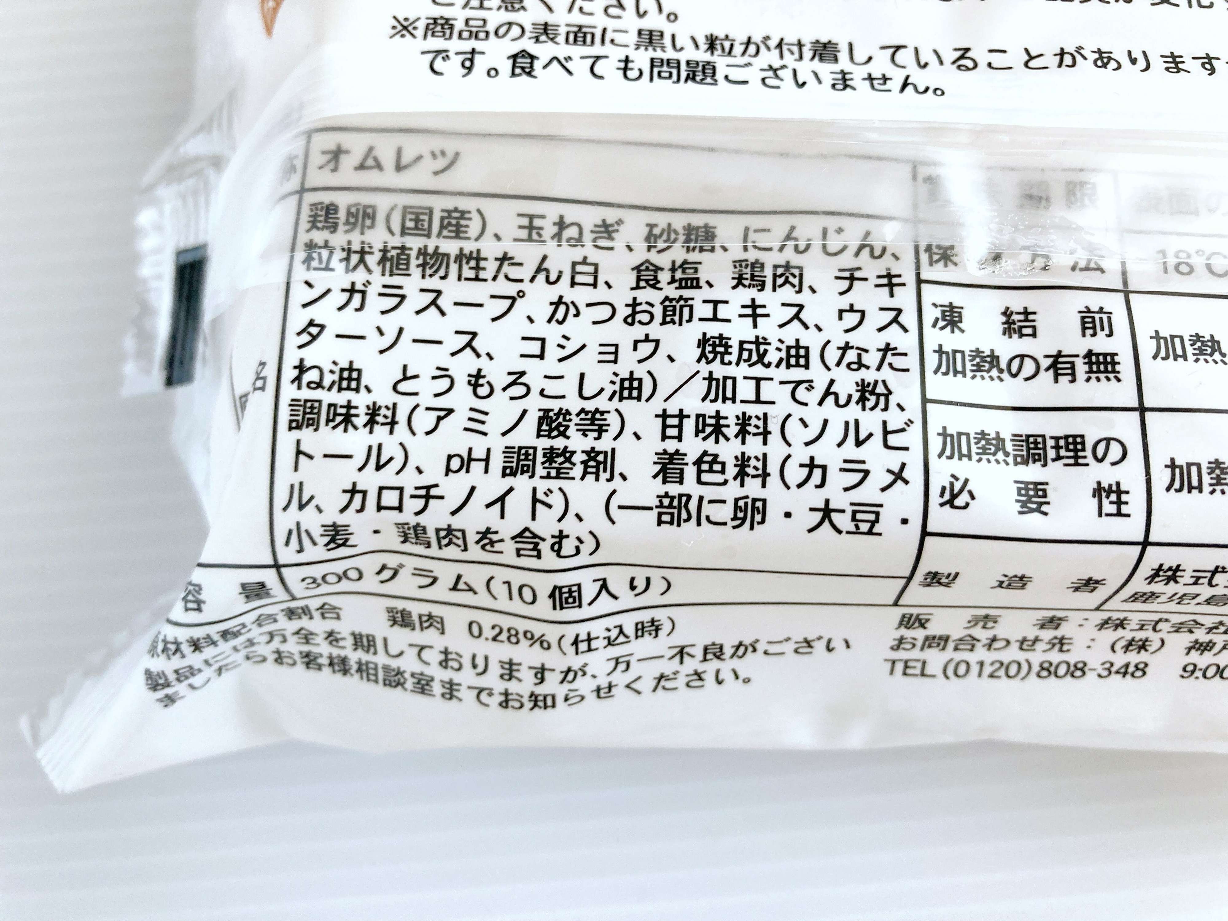 こちらのミートオムレツは、300g 10枚入り 246円です。