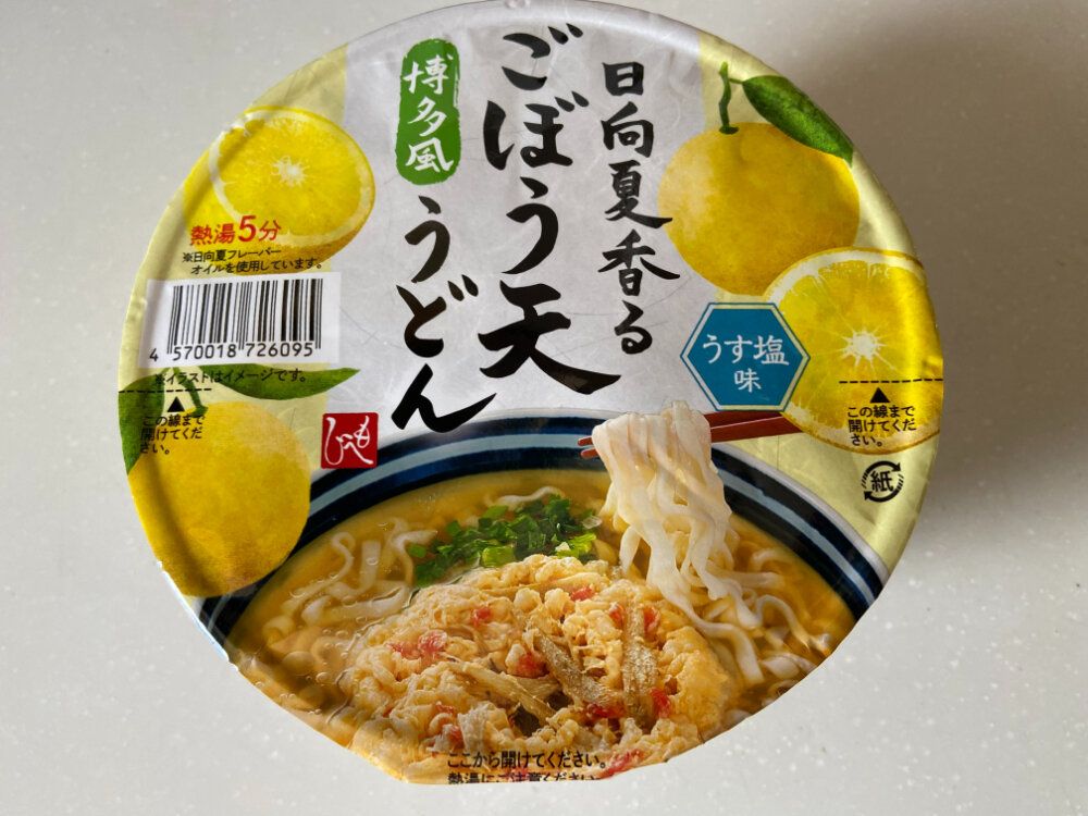 今回紹介するのは「日向夏香る博多風ごぼう天うどん」(購入時:220円)です。