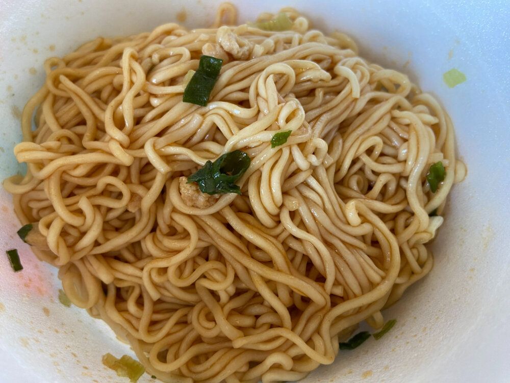 ドライミーとはシンガポールではポピュラーな汁なし麺のことで、カルディのドライミーはチキンとオイスターの旨味やごま油のコクが効いたほどよい辛さのしょうゆ味のたれであえているとのこと。
