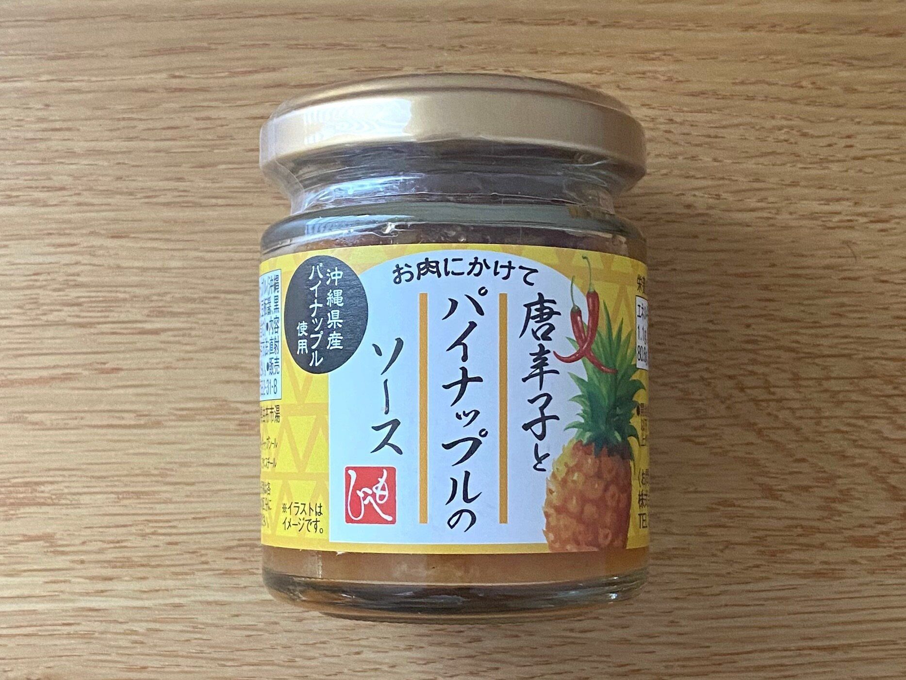沖縄県産のパイナップルと唐辛子が入った、珍しい組み合わせの瓶入りソース。シンプルな材料でつくられているので、沖縄パイナップルの濃厚な甘みと果実感を楽しめます。肉の味付けはもちろん、ピザやタコスのトッピングにするのもオススメなんだそう。