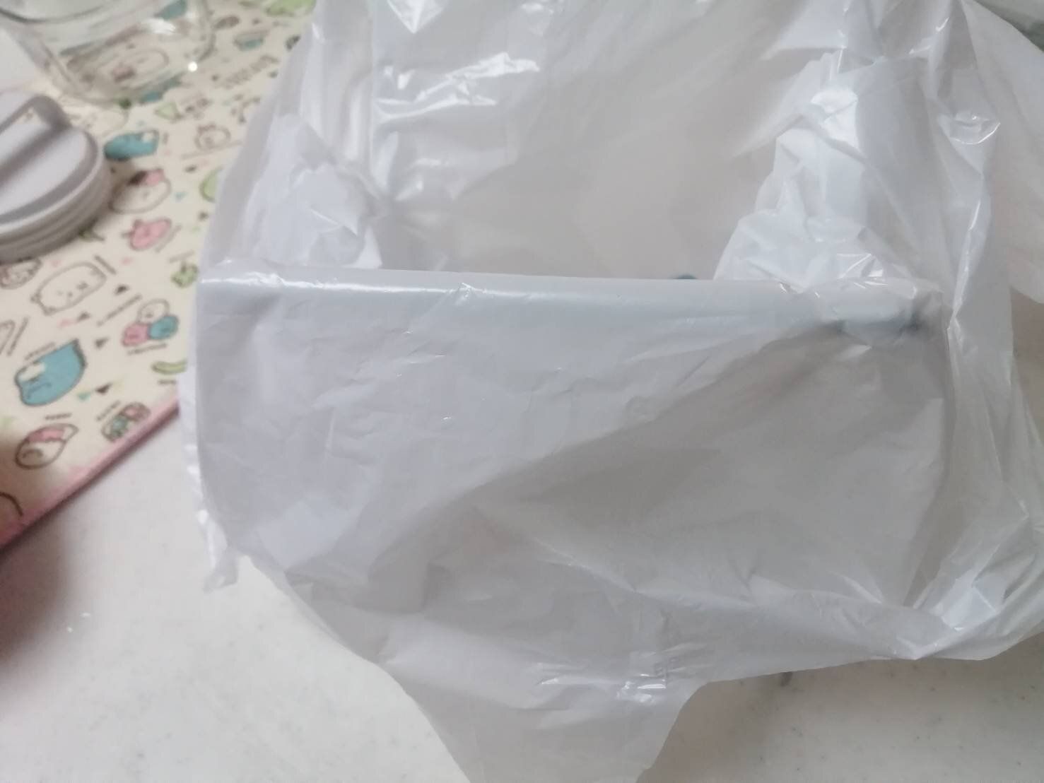 ビニール袋が途中で落ちたりしない?と心配になるかもしれませんが、安心の滑り止め付きです。卵の殻などを入れても重みで滑る事なく、しっかりキープしてくれます。