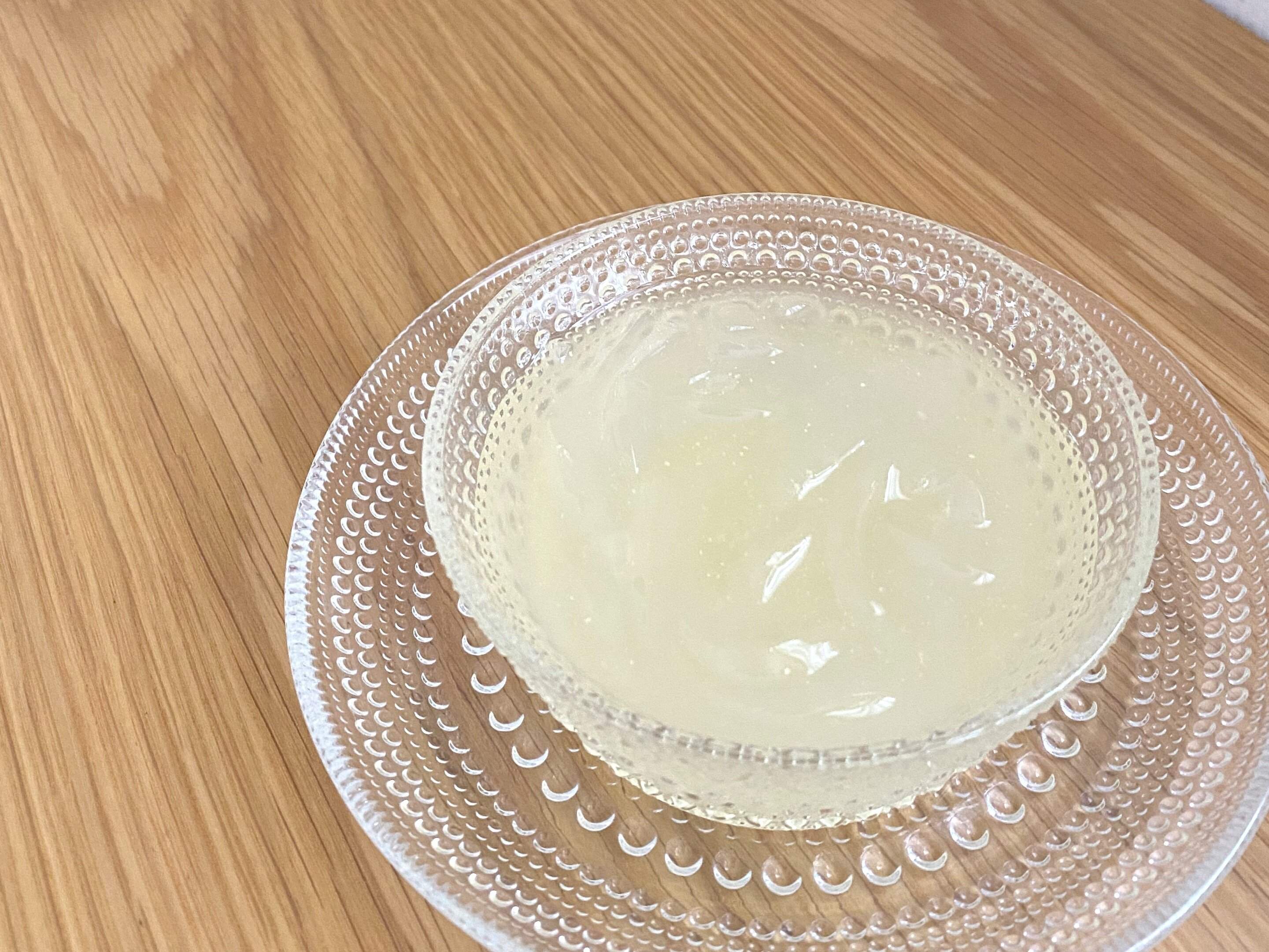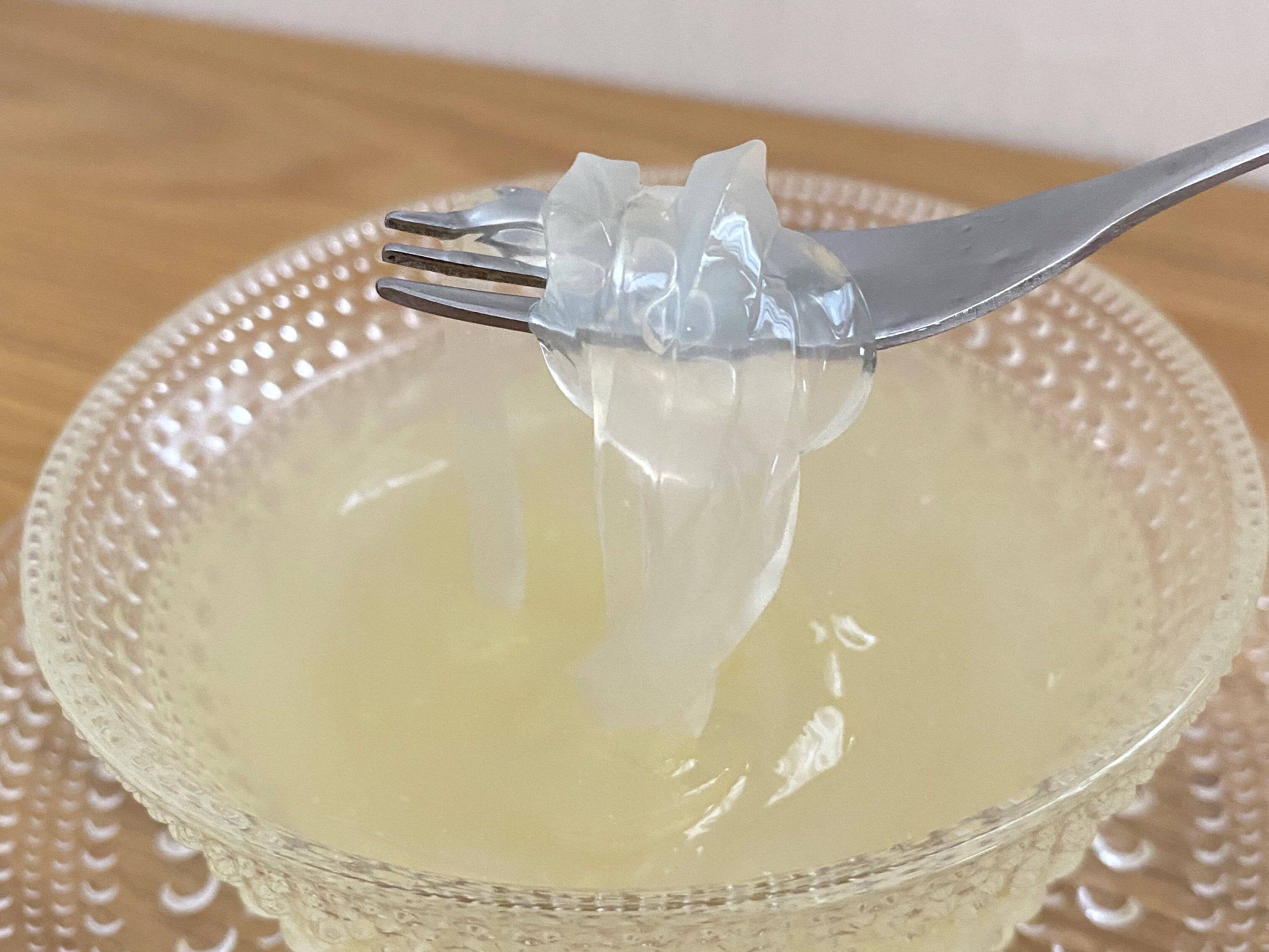ゼリーよりしっかりとした食感ですが蒟蒻ゼリー程の弾力ではない絶妙な食感で、上品な味わいのシロップともよく合います。