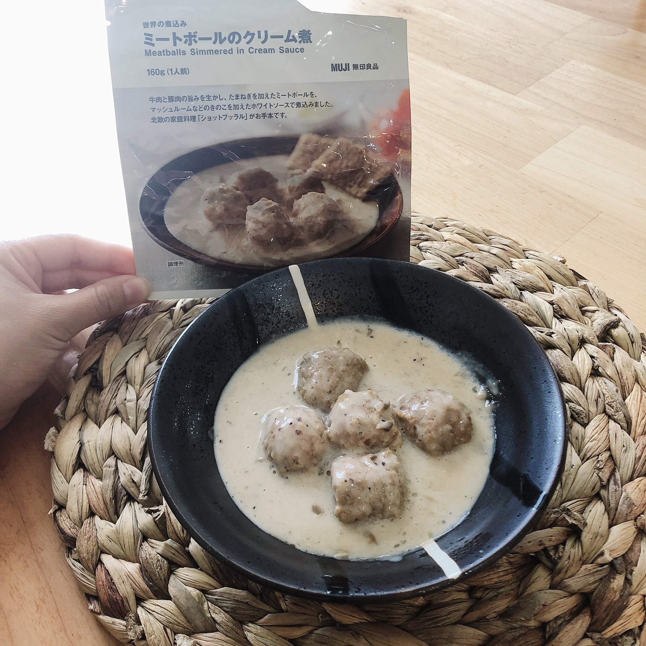 牛肉、豚肉、玉ねぎの旨味いっぱいのミートボールが5つ入っています。マッシュルームなどのきのこがクリームソースに混ざっていて、キノコの食感と風味を感じることができます。