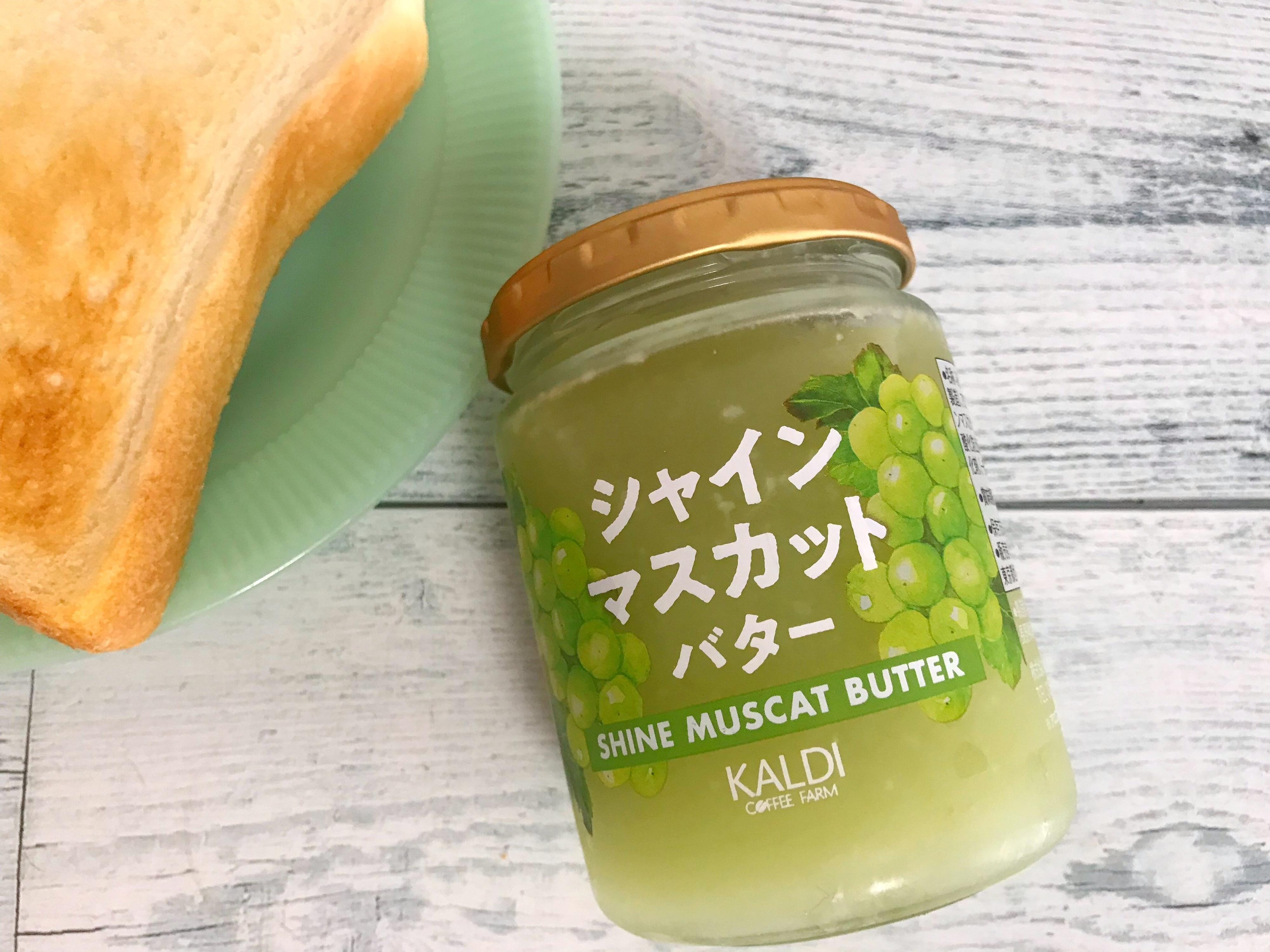 SNSでも「おいしすぎる」と話題になっている、KALDIオリジナル「シャインマスカットバター 225g」(753円 税込)。