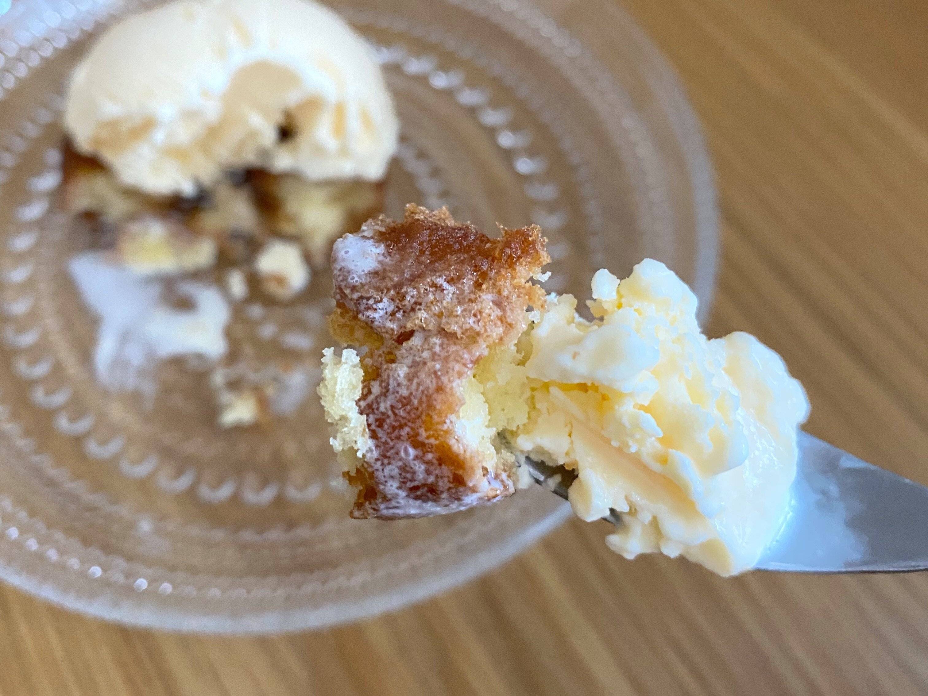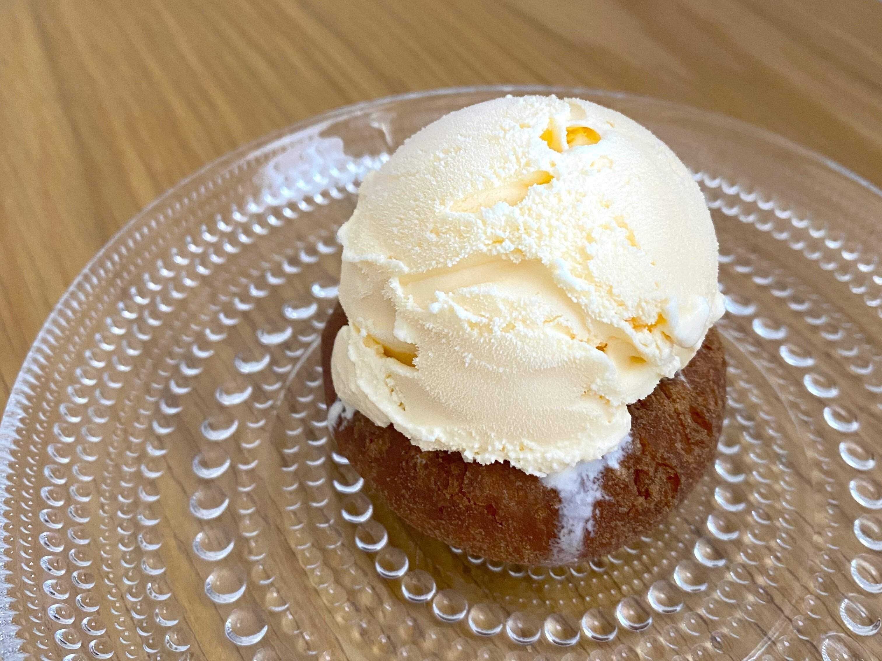 冷やしたドーナツにバニラアイスを合わせると、贅沢なスイーツに大変身!メロンの味わいとバニラアイスがぶつかり合うことなくお互いを引き立てていて、口の中で混ざり合うとメロン風味のバニラアイスになります。
