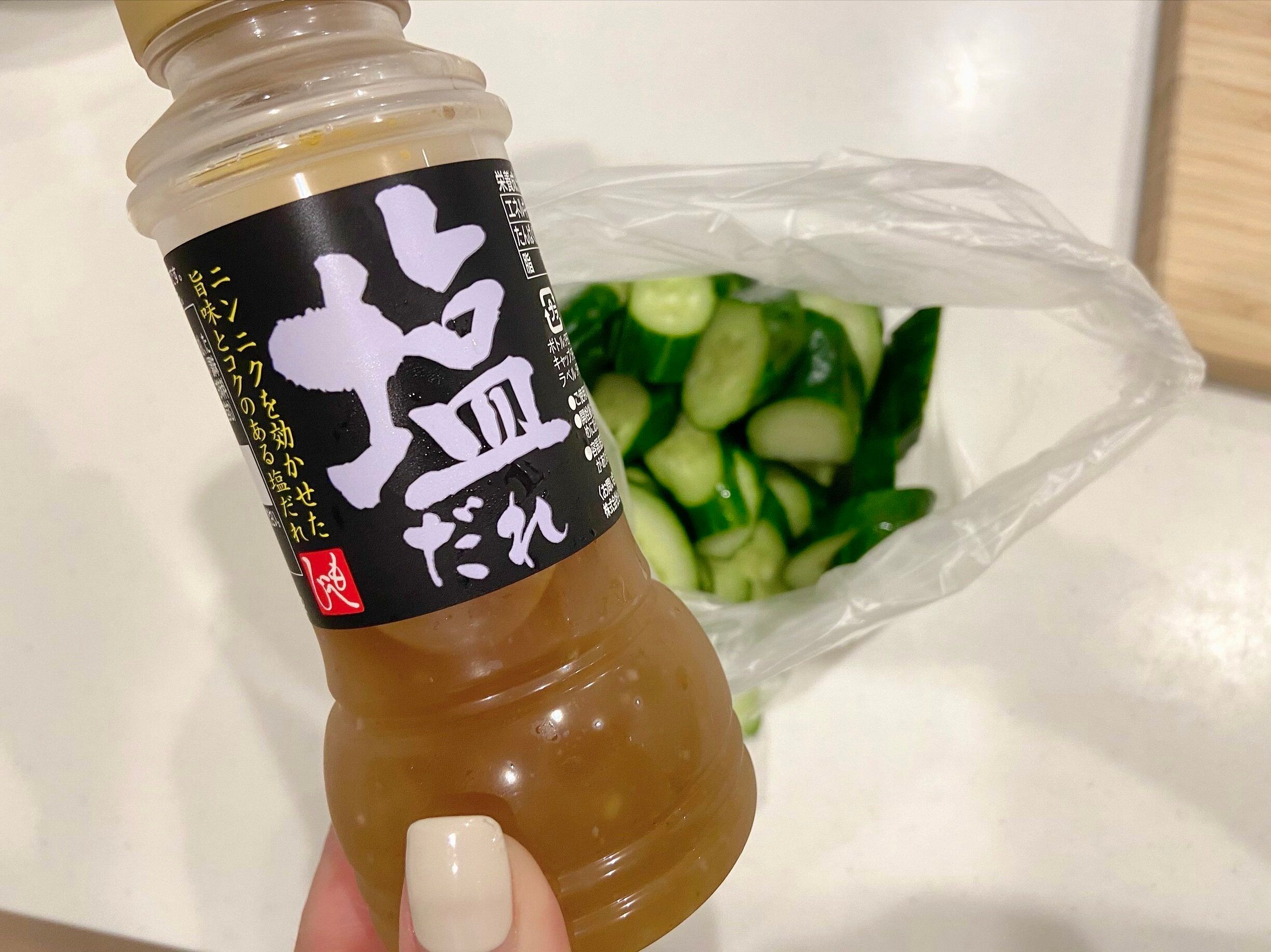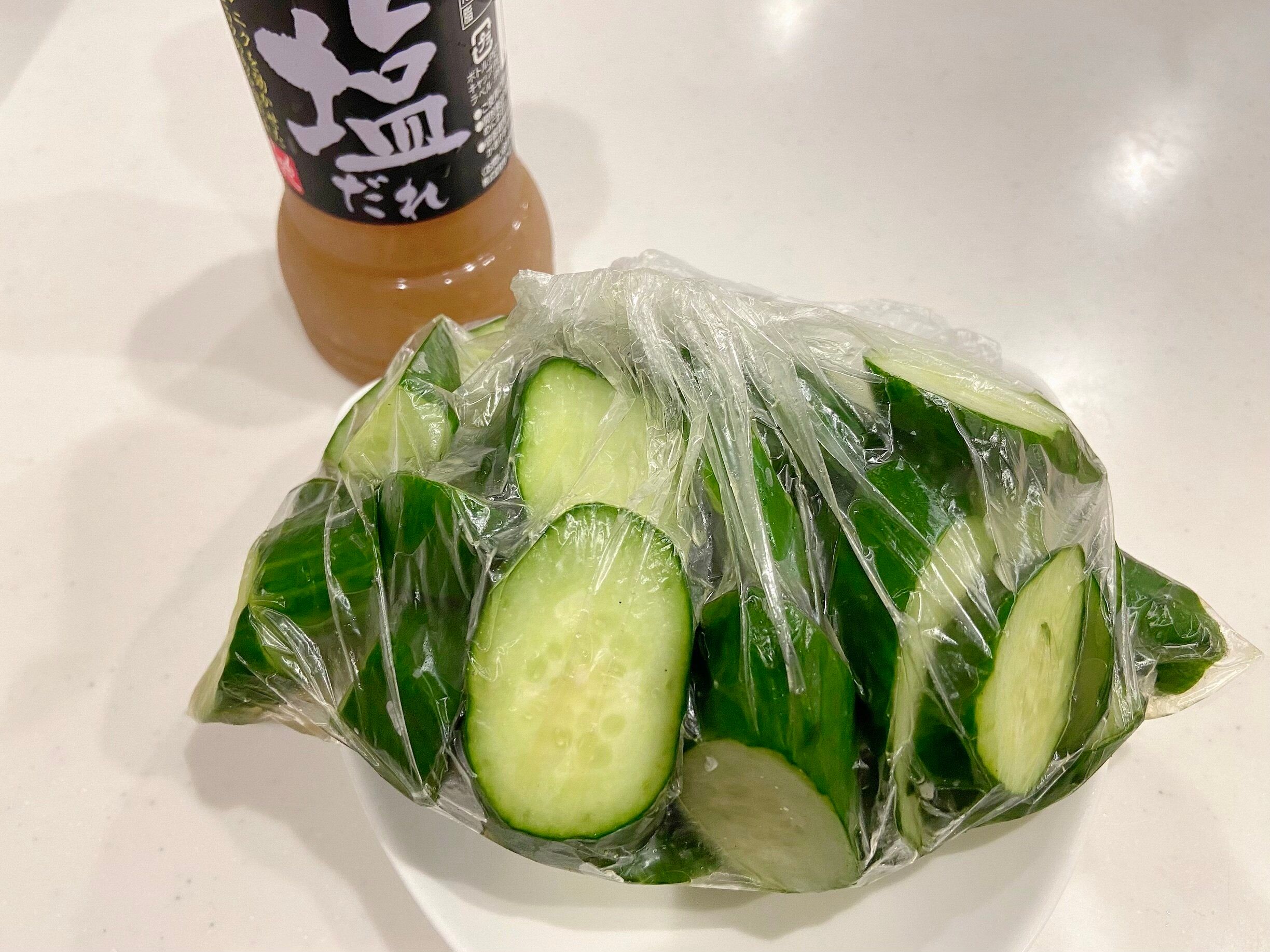 2 ビニール袋にきゅうりと塩だれを適量入れる。