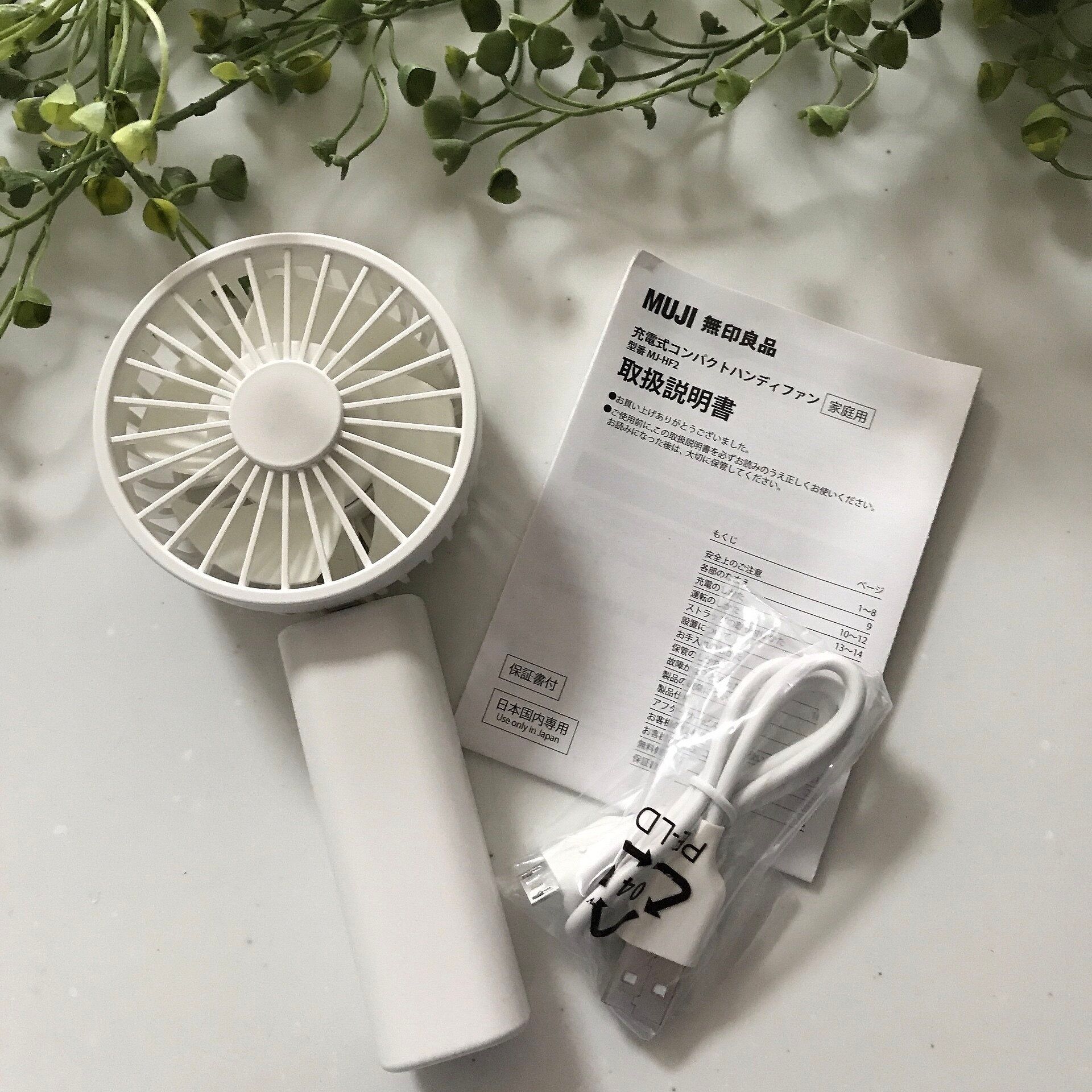 無印良品らしいシンプルデザイン。付属品はUSBケーブルと取扱説明書のみで、今年のハンディファンにはストラップはついていません。