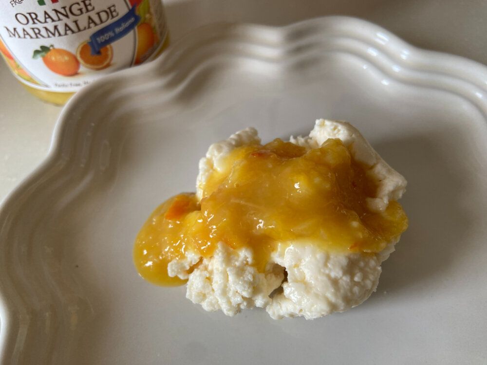 オレンジマーマレードはチーズとの相性も抜群です。クリームチーズ、カマンベールチーズもおいしいですが、特にお気に入りはカッテージチーズ。そのまま食べても、パンにのせてもおいしい最高の組み合わせです。