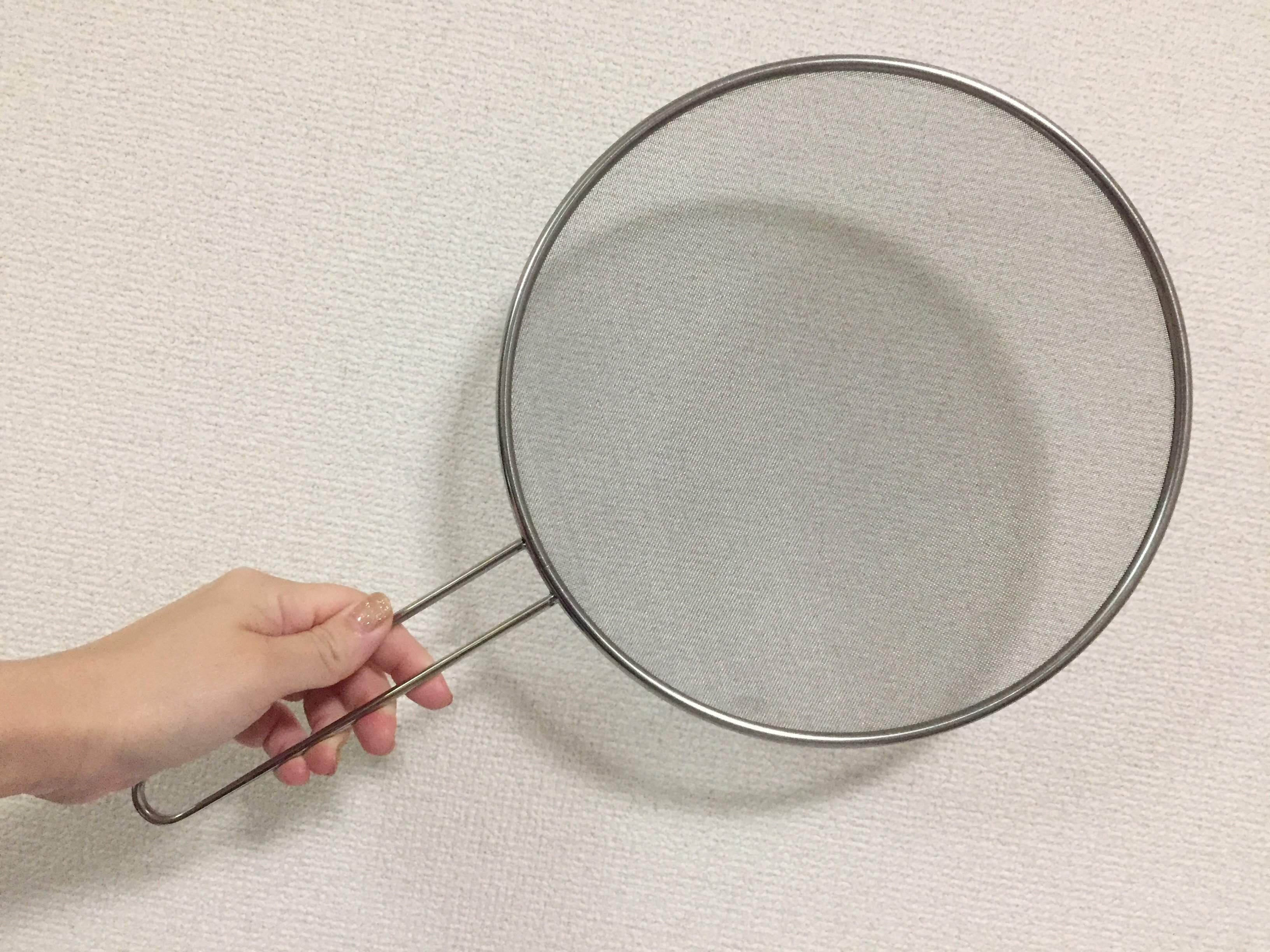 「油跳ね防止ネット」(330円)は調理中の油跳ねを緩和してくれるので揚げ物をつくるときは必ず使用しています。
