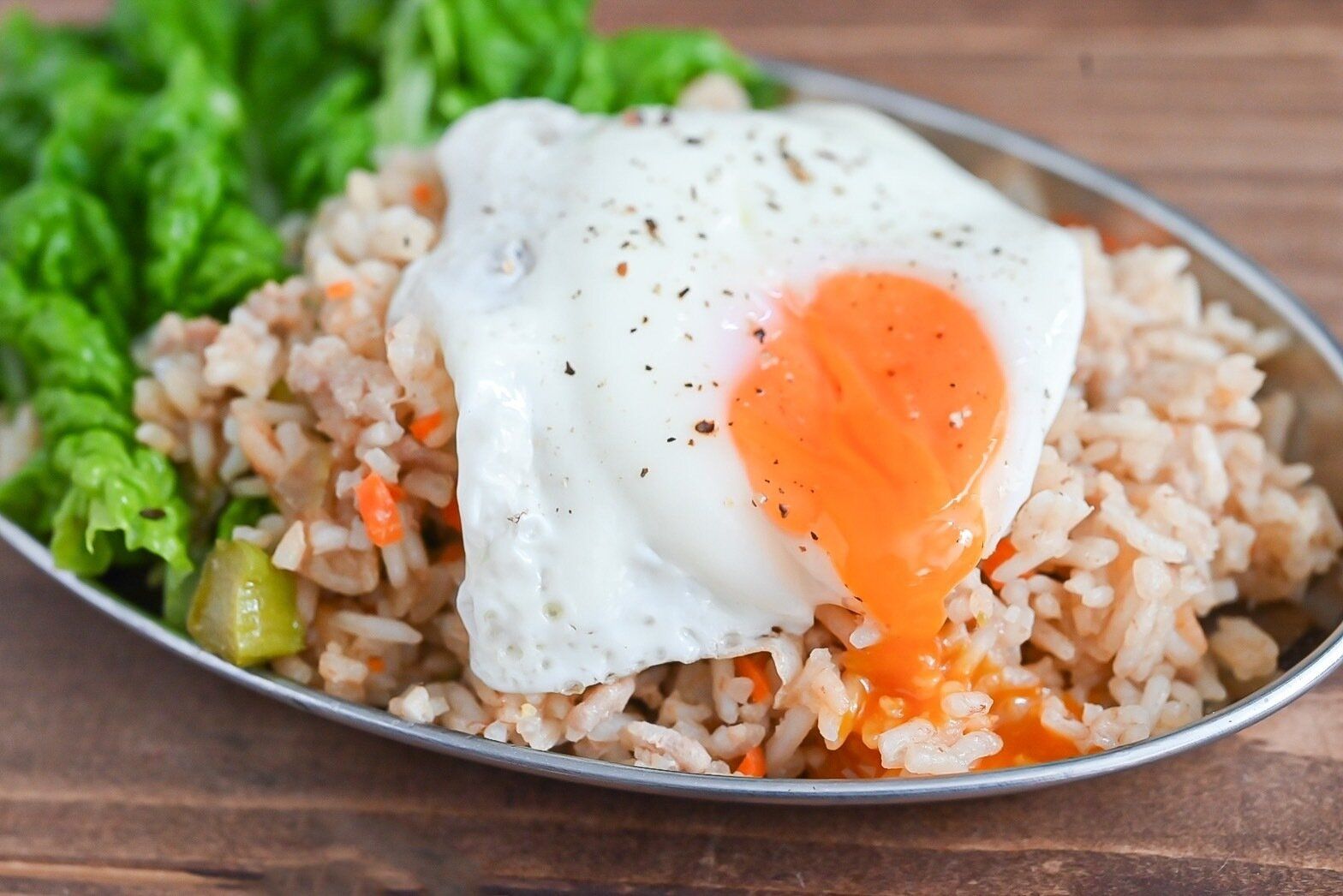 皿に盛り、目玉焼きをのせていただきましょう。