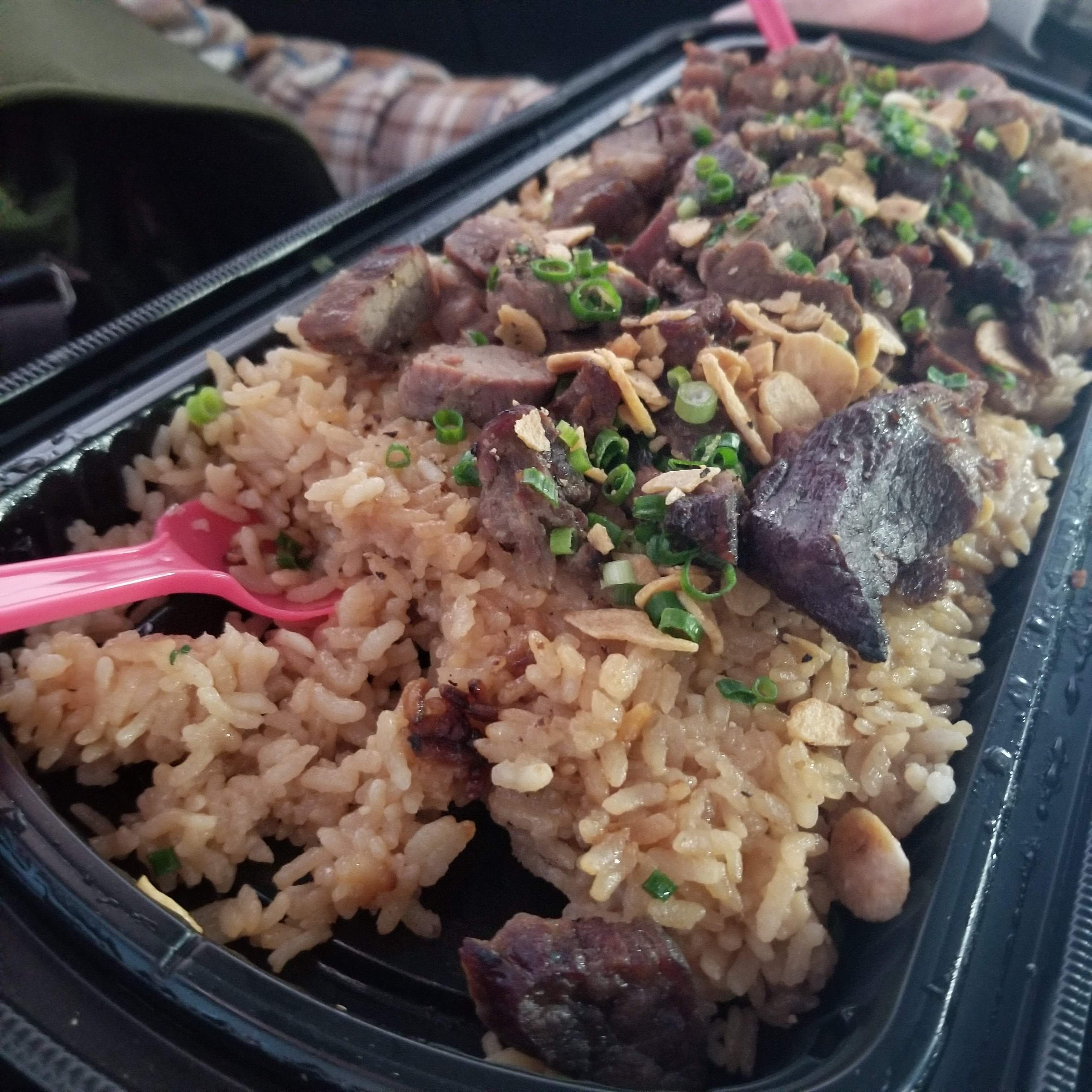 それほどお肉には期待していなかったのですがご飯との相性がバツグン。かなりの量入ってて大満足です。にんにくが大量に乗っていて、醤油味のごはんもとても◎。