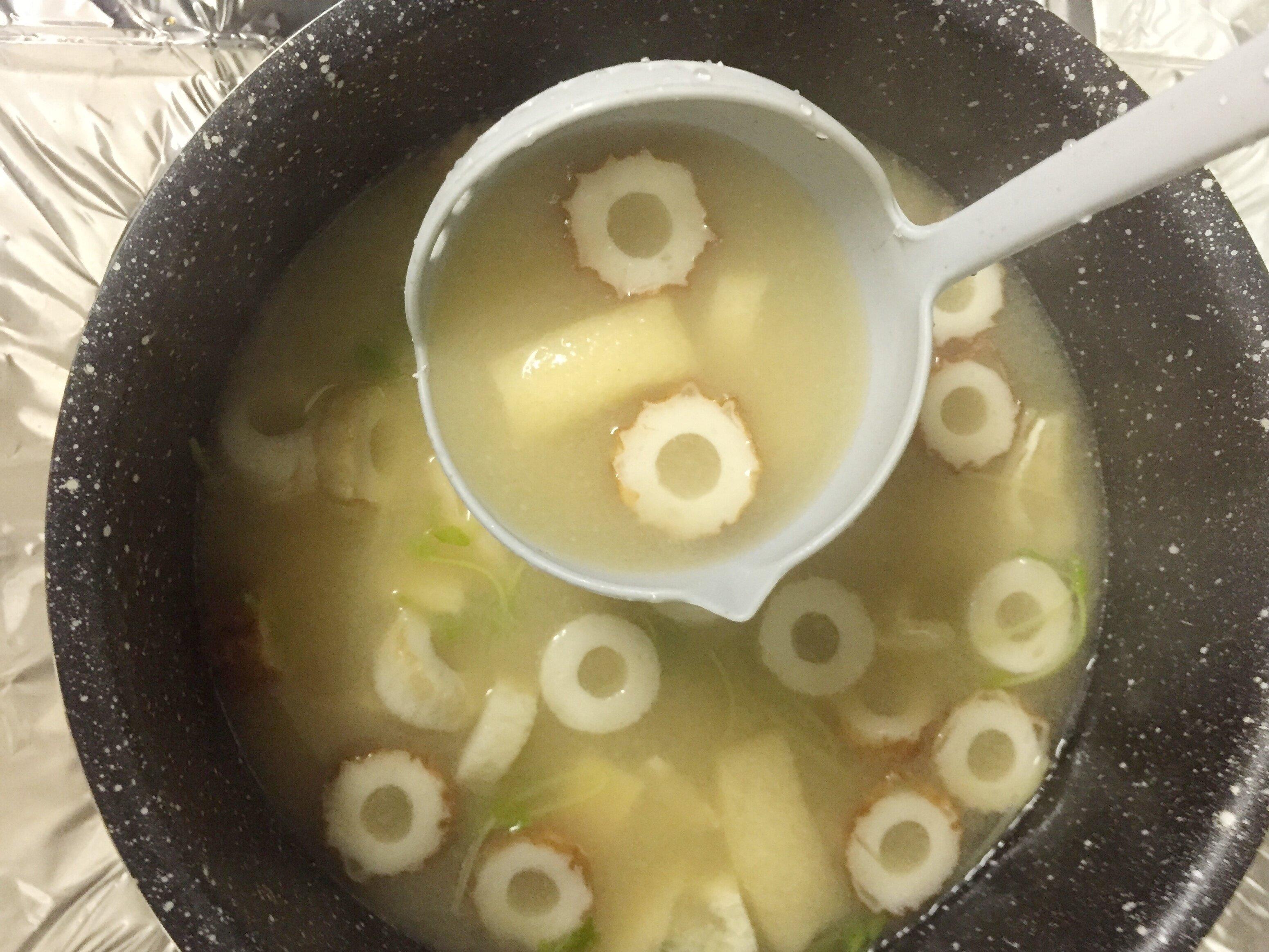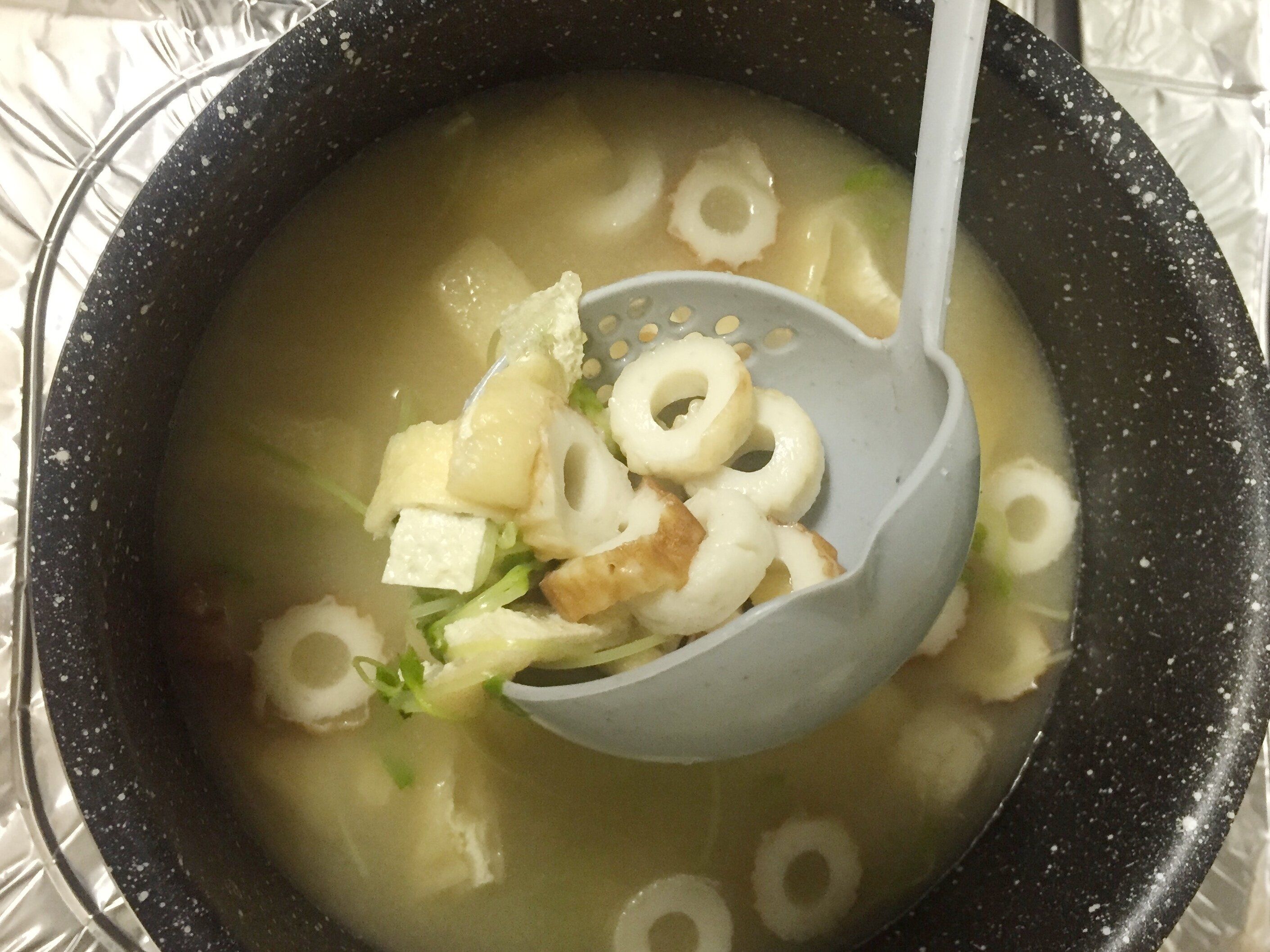 穴の開いている部分を使えば、お皿やお椀に具だけを取り分けることができます。