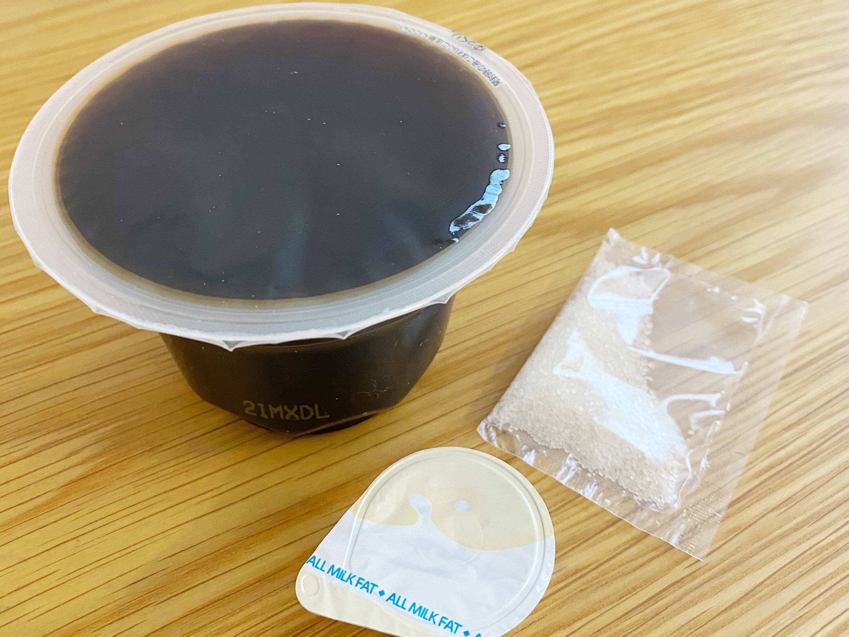 コーヒーゼリー、コーヒーフレッシュ、ブラウンシュガーがセットになっています。